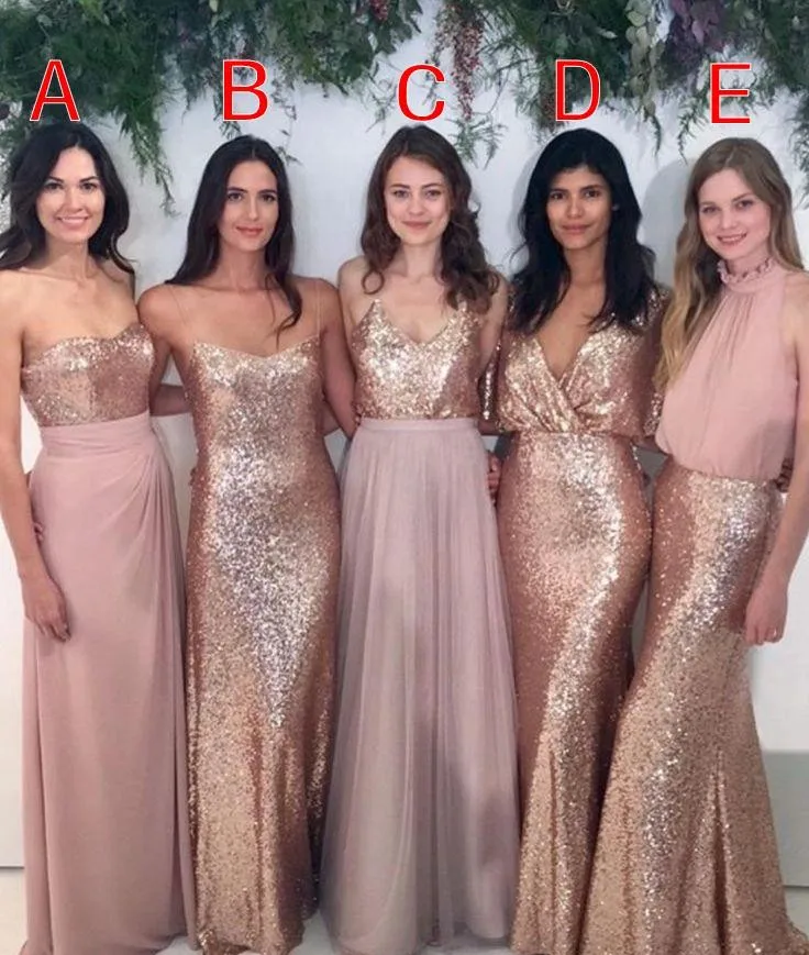 Платья для подружек невесты, Смешанные розовые шифоновые платья разных цветов длиной до пола, платья для свадебной вечеринки в стиле кантри