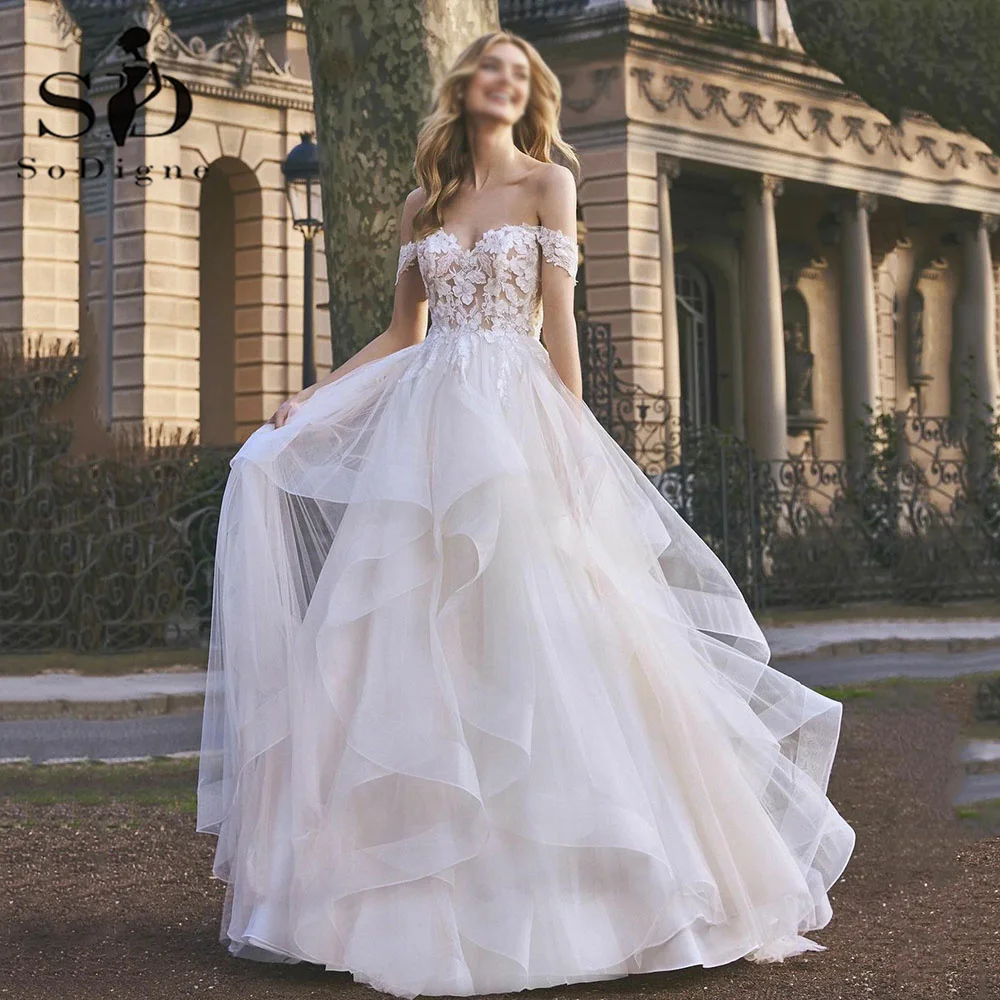 Женское свадебное платье со съемным шлейфом SoDigne, длинное кружев...