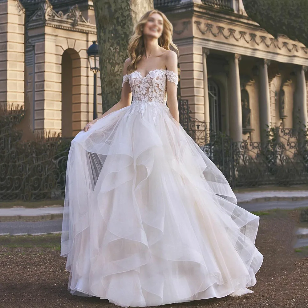 Свадебное платье принцессы LORIE, кружевное платье-трапеция с аппли...