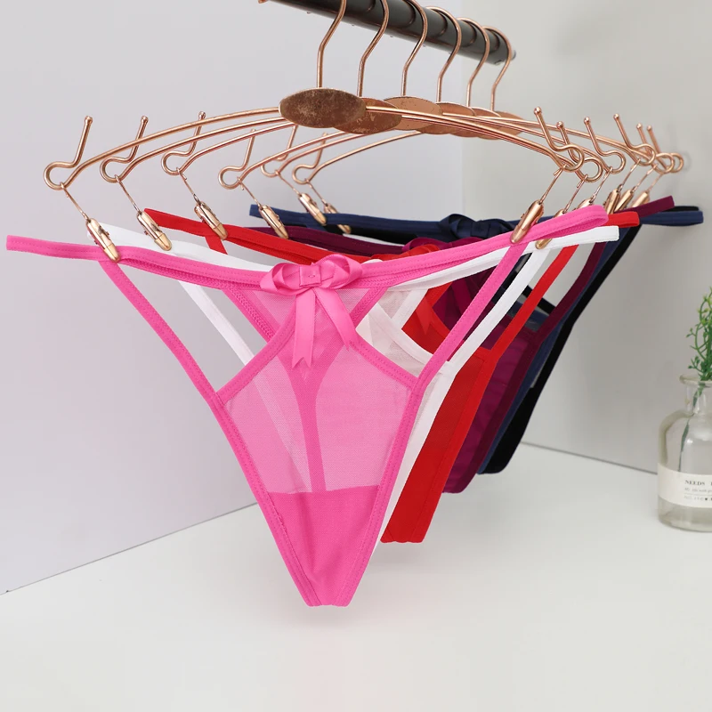 Женские сексуальные трусики бикини, 4 шт., женские ажурные стринги, сетчатые Интимные стринги с бантом, милые трусики, женское нижнее белье 1616P4