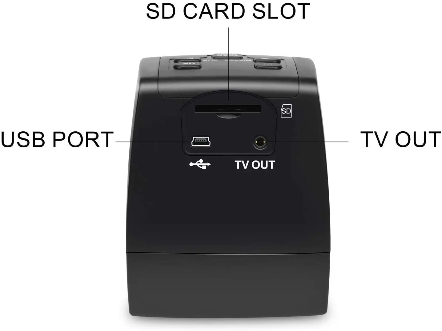 Фильм слайд-конвертер имеет 2 4 "цифровой ЖК-дисплей дисплей для просмотра Просто воспользуйтесь нашей ТВ выход для подключения и просматривать на вашем ТВ с совместимая с цифровыми стандартами NTSC/PAL видео/ТВ Тип tv-выхода сохранить ваши изображения с помощью порт для чтения карт памяти SD