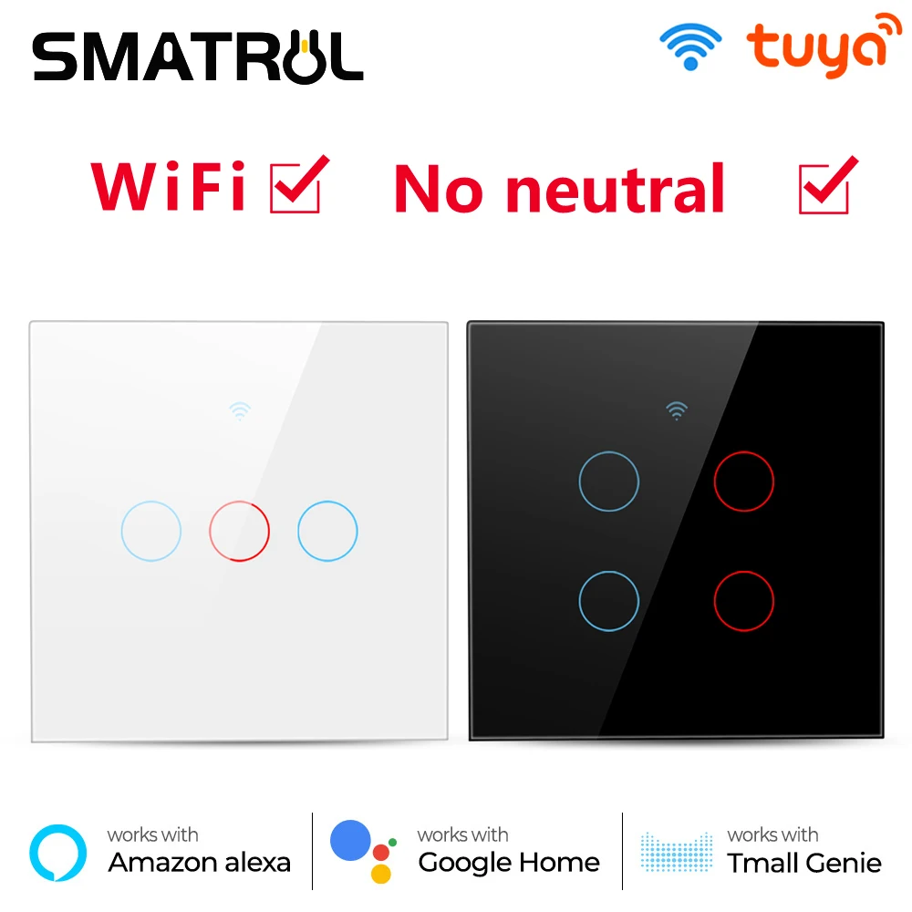 Умный сенсорный выключатель SAMTRUL Tuya, Wi-Fi, без нейтрального провода, европейский стандарт, 2 канала, 110 В, 220 В, ВКЛ.ВЫКЛ., 1234 клавиши, для Alexa Google Home