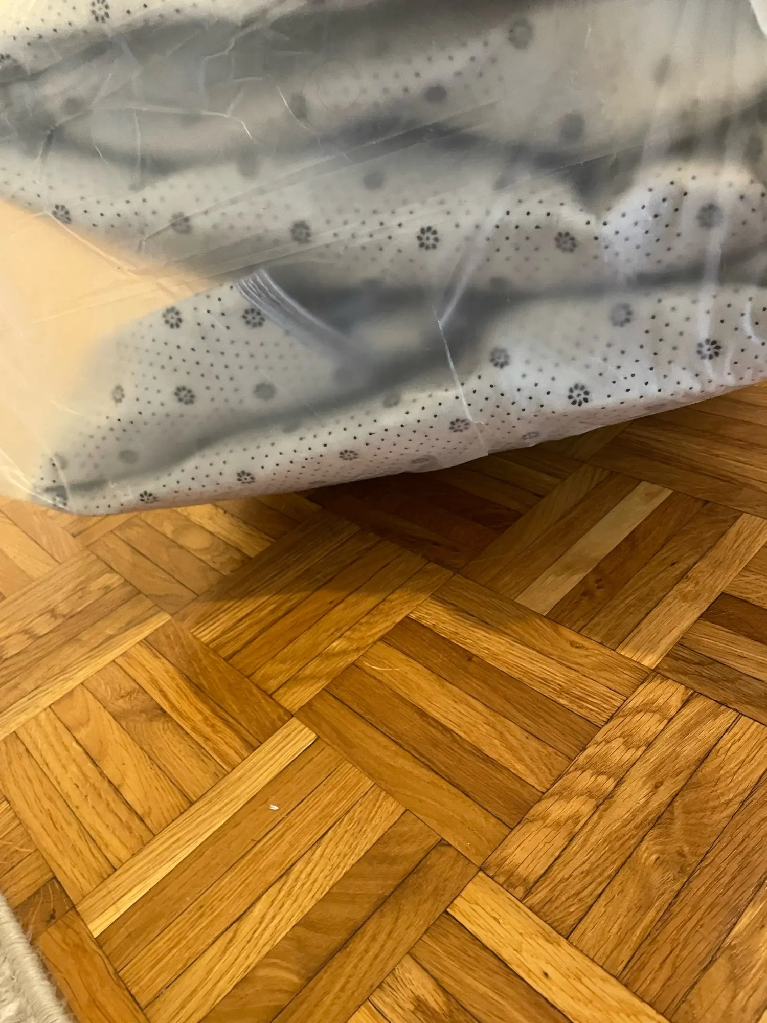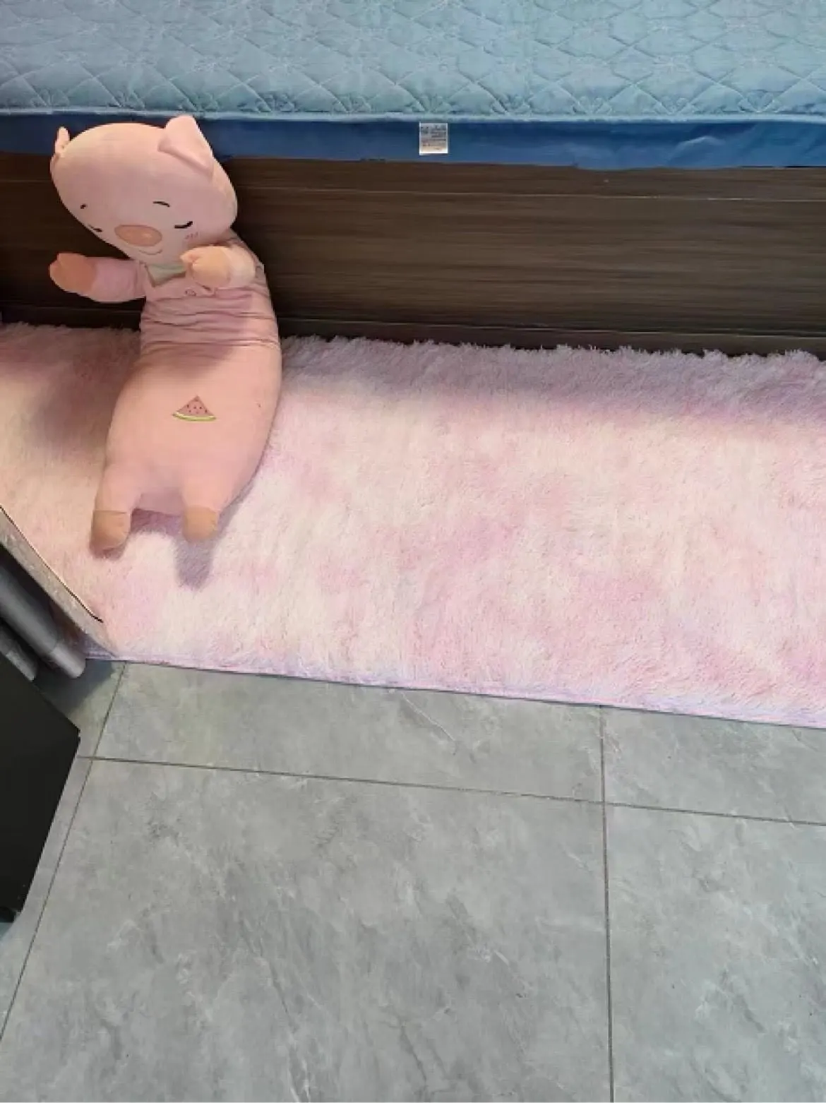 Выглядит не совсем так как на фото. На фото расцветка ковра равномерная, на самом деле перелив оттенка серого и белого плешивый, похоже больше на пятна. Очень тонкий, не из плотной ткани.