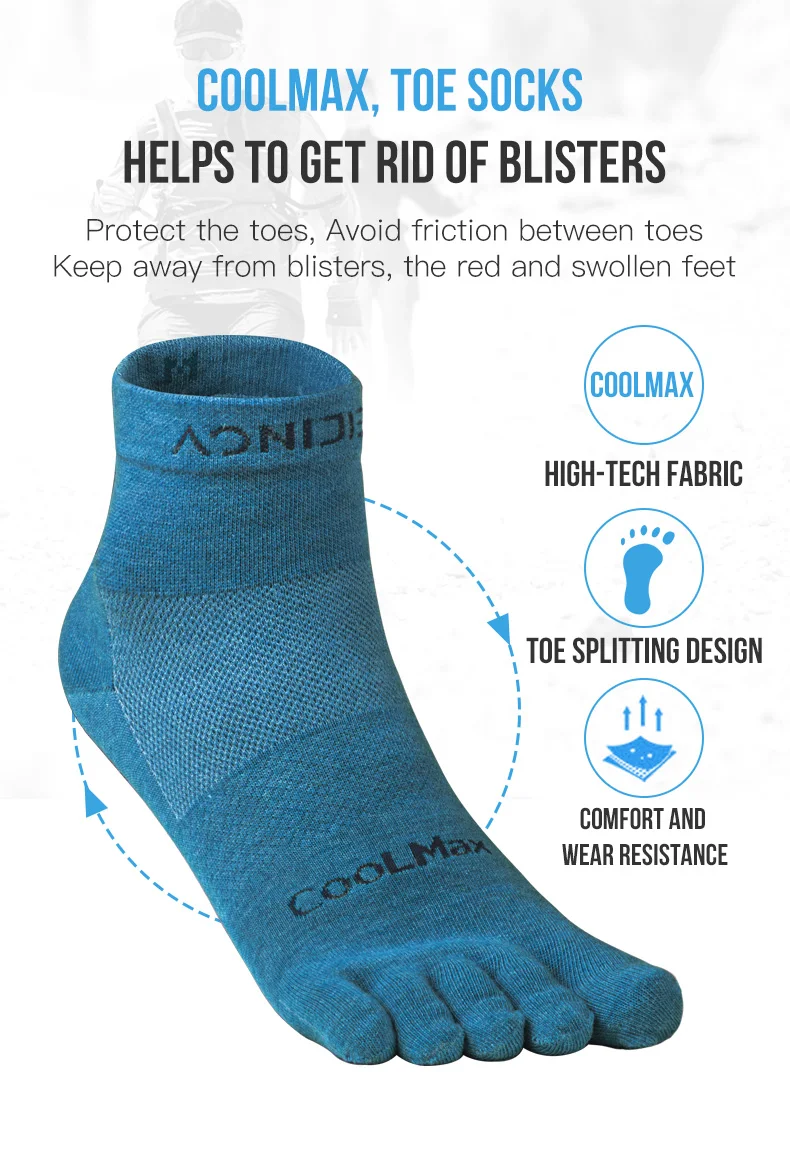 Особенности:-78% Coolmax®/18% нейлон/4% лайкра®-Запатентованная пятью носками AONIJIE специально для бегунов и туристов-Предотвращает появление волдырей и горячих точек во время бега-Идеально подходит для бега, прогулок и занятий спортом-Превосходное управление mositure во время всех длин