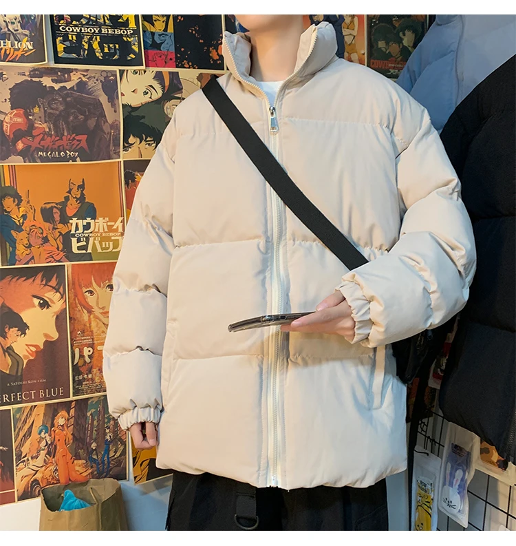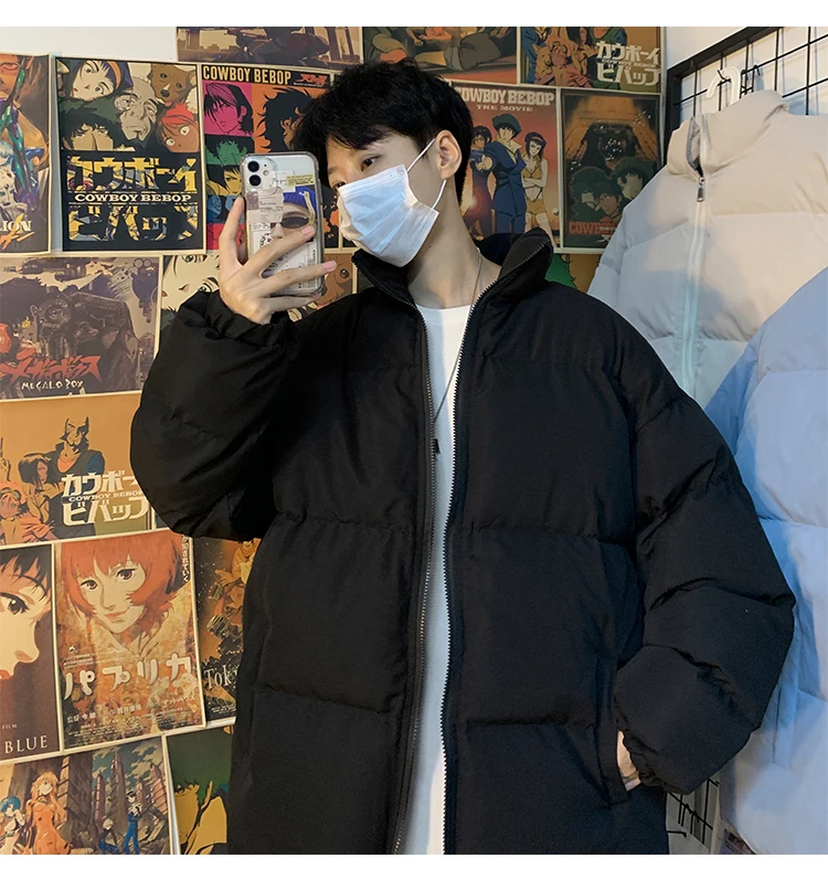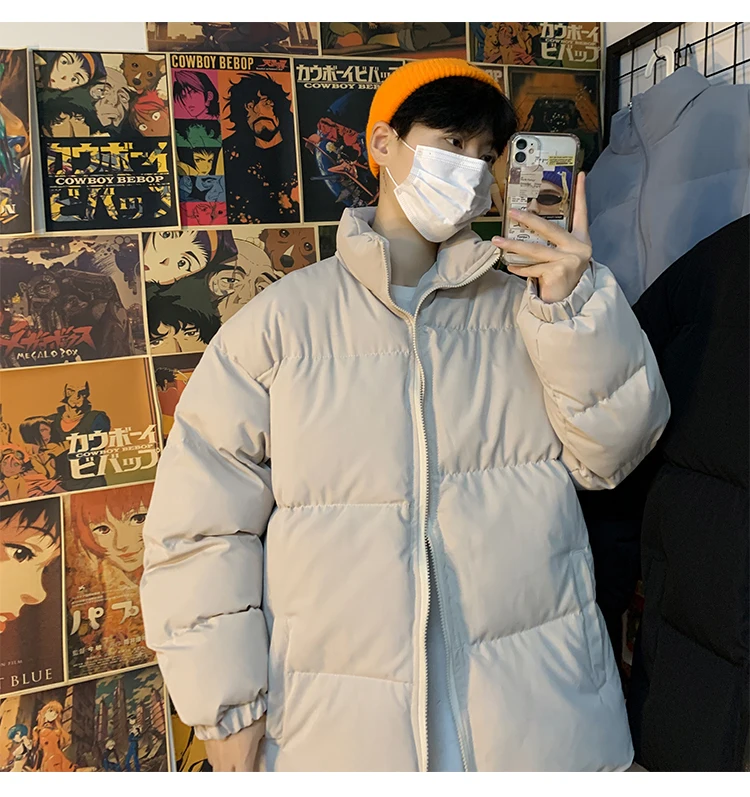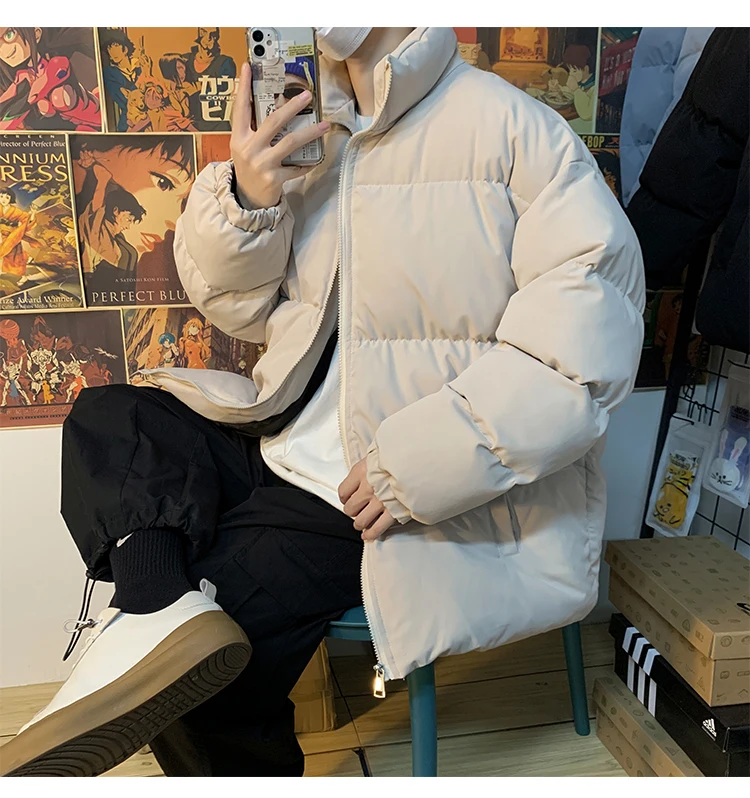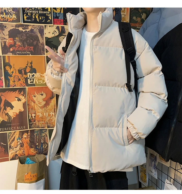 Мужская зимняя пуховая куртка с воротником-стойкой, в стиле Харадзюку