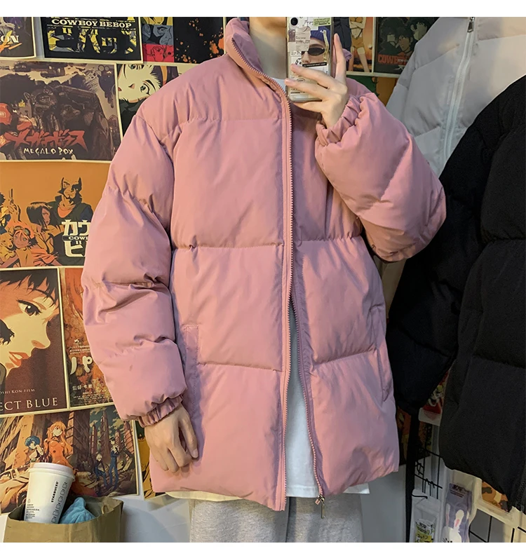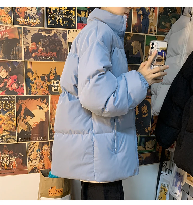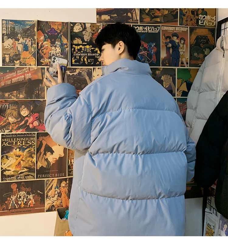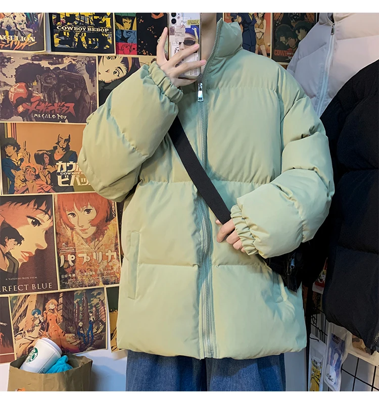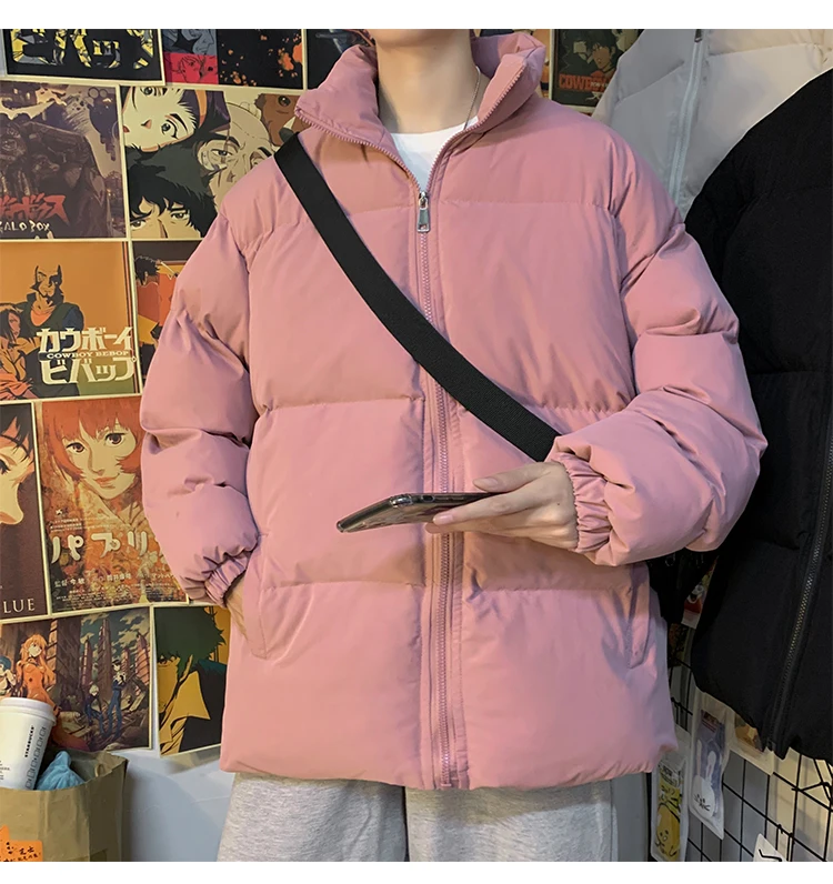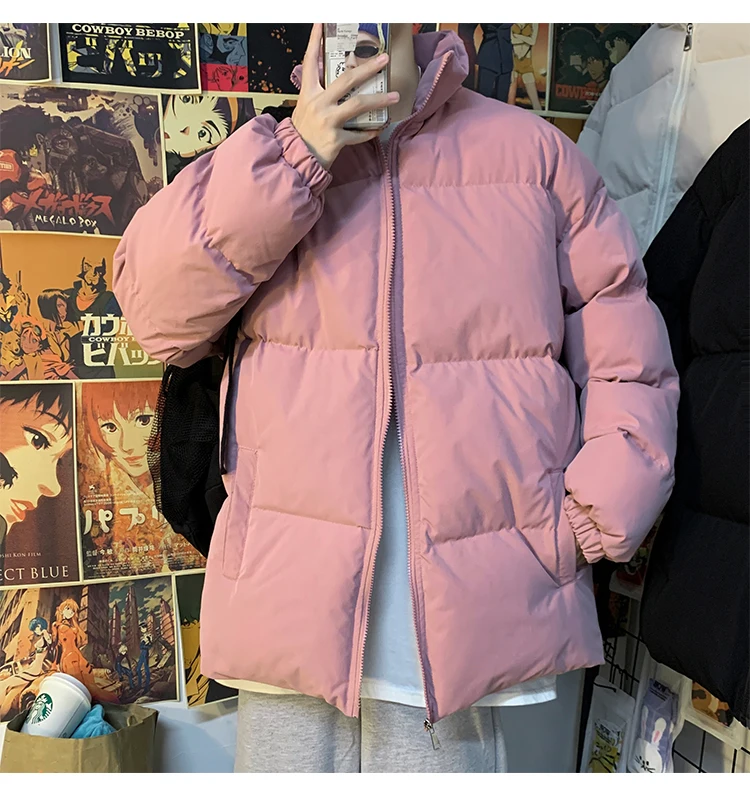 Мужская зимняя пуховая куртка с воротником-стойкой, в стиле Харадзюку