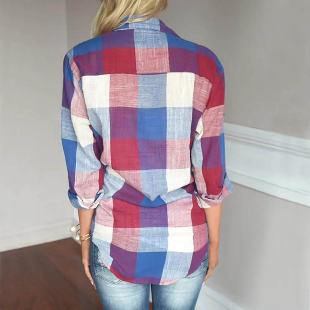 Рубашка женская клетчатая с отложным воротником и длинным рукавом
