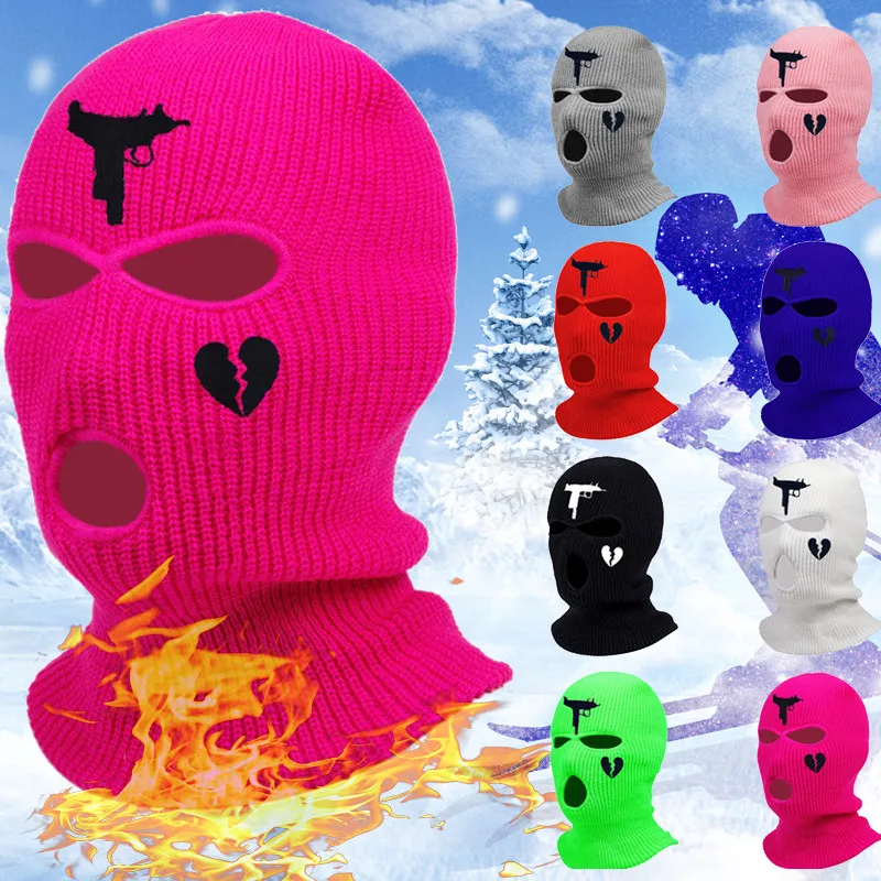 Лыжная маска с вышивкой на все лицо, шапка, Балаклава с 3 отверстиями, уличные спортивные ветрозащитные вязаные шапки, шапка, Зимняя Теплая Лыжная маска унисекс