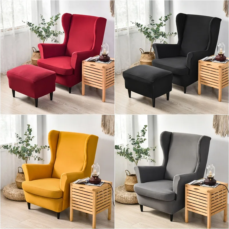 Бархатный Чехол для стула с крыльями, эластичный чехол для кресла и...