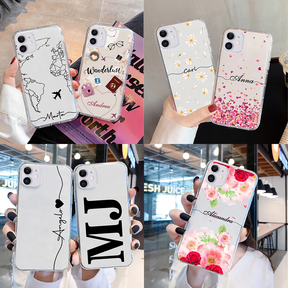 Чехол для телефона с именем под заказ для iPhone 13 Pro Max 11 12 X XR XS 6 7 8 Plus, роскошный мягкий чехол из ТПУ для iPhone 13 SE 2020, аксессуары