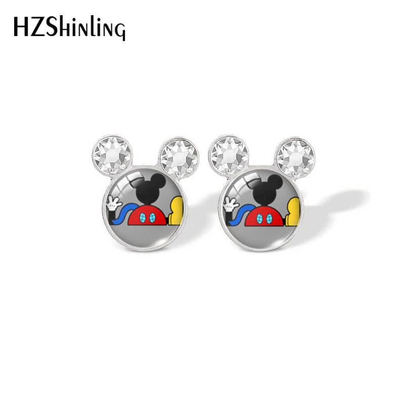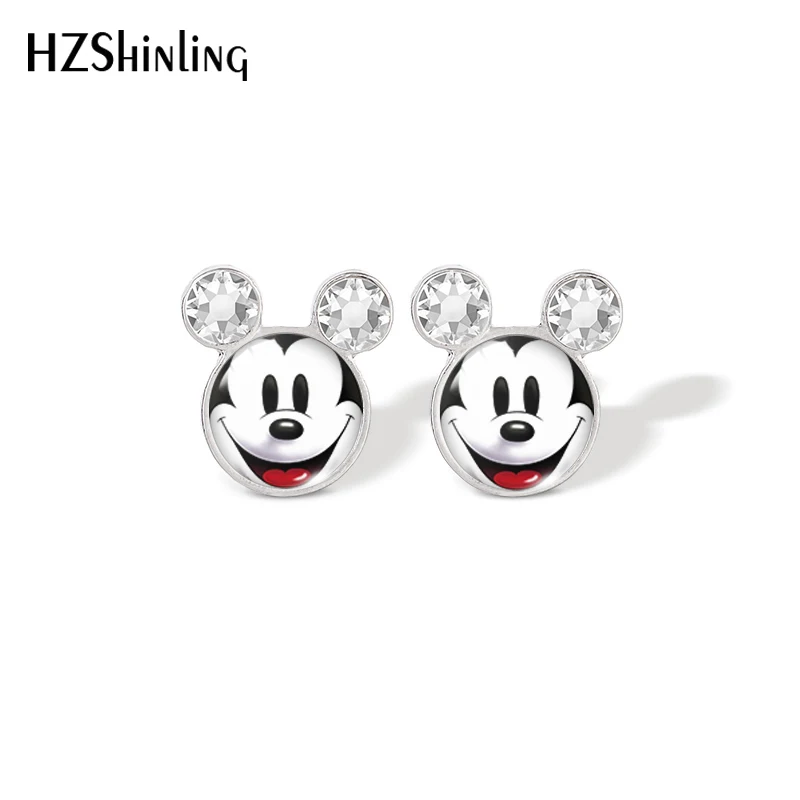 Женские стеклянные серьги-гвоздики с изображением героев Диснея, Микки Маус