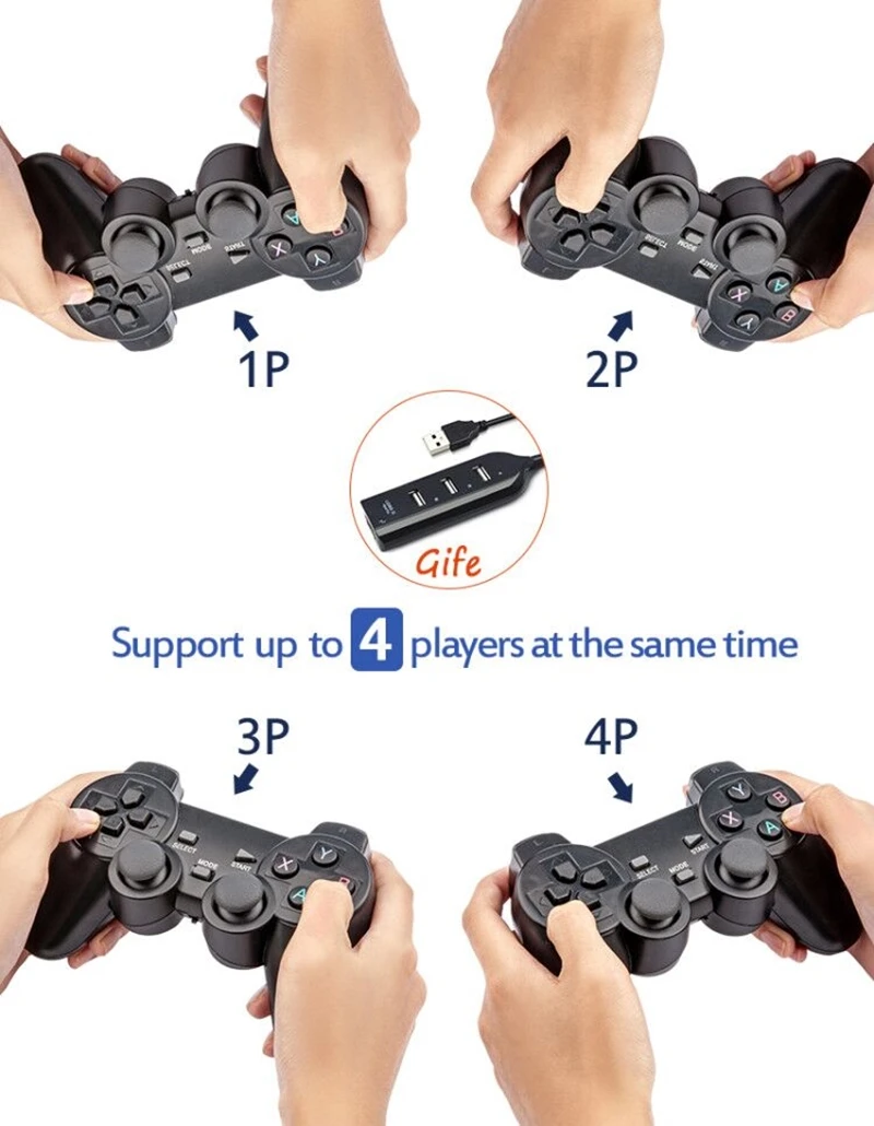 -Классический стиль, двойной режим, двойные джойстики, двойные плечевые клавиши, Поддержка большего количества игр. Поддержка передачи сигнала на дальние расстояния 8-10 метров, без проводов, игры более приятные.
