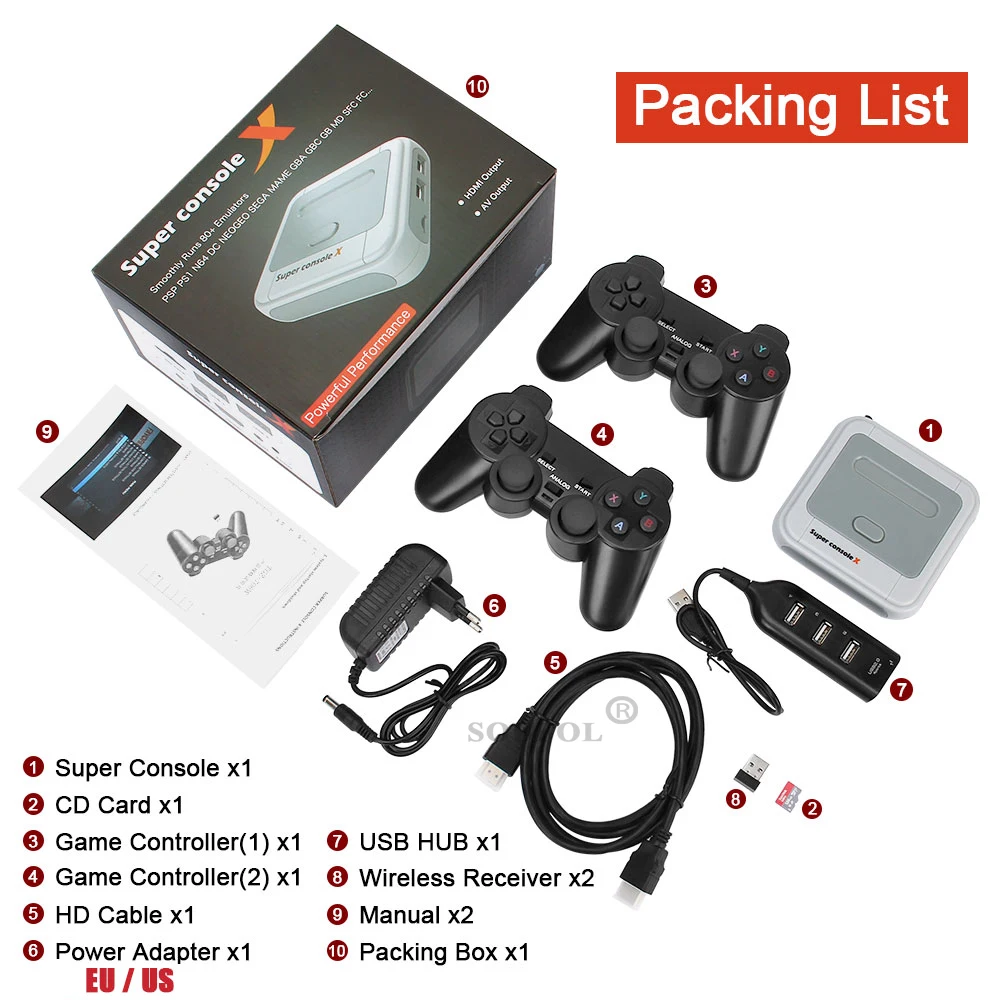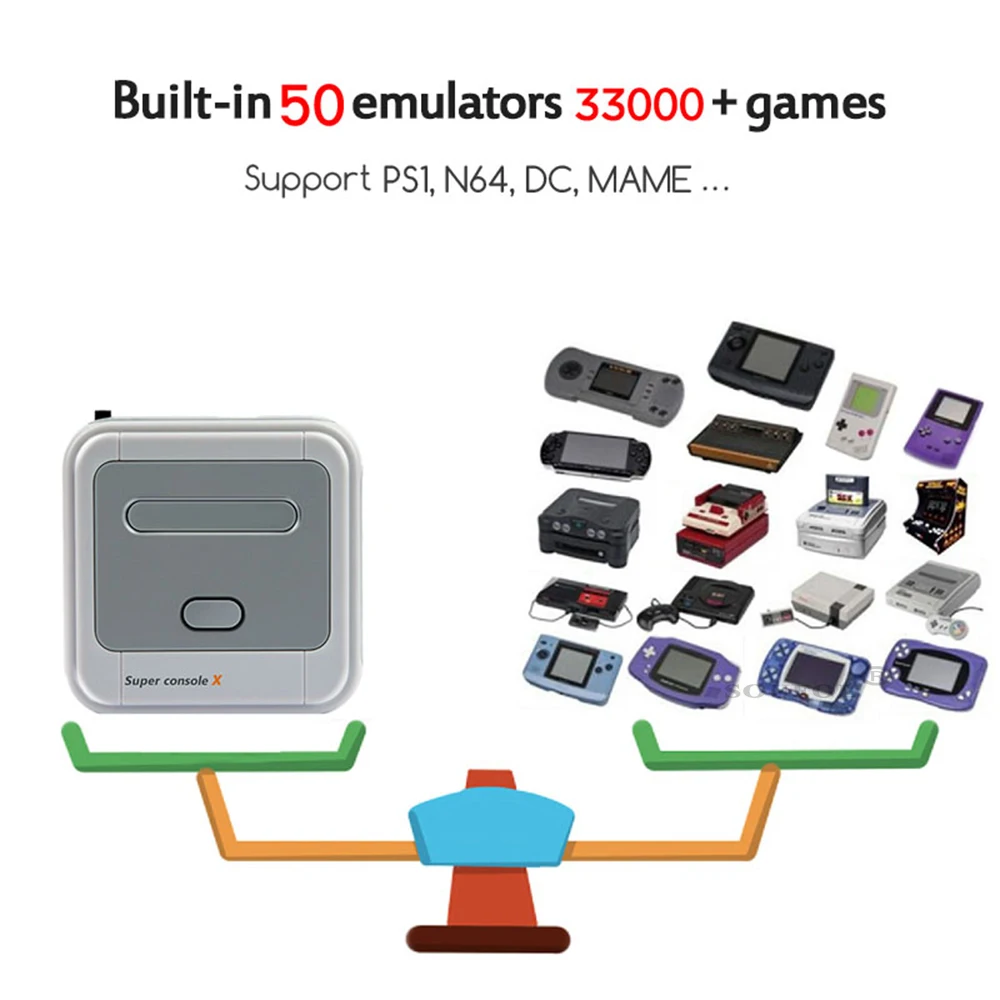 Супер консоль X Wi-Fi, видеоигровые консоли с поддержкой AVHD 4K, HD выход, Ретро игровой плеер со встроенными 50000 + играми для PSP PS1 N64 MD