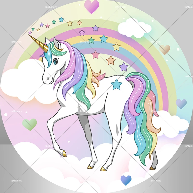 Сердце звезды Радуга Единорог украшение вечеринки для детей Фотофон круглая Обложка