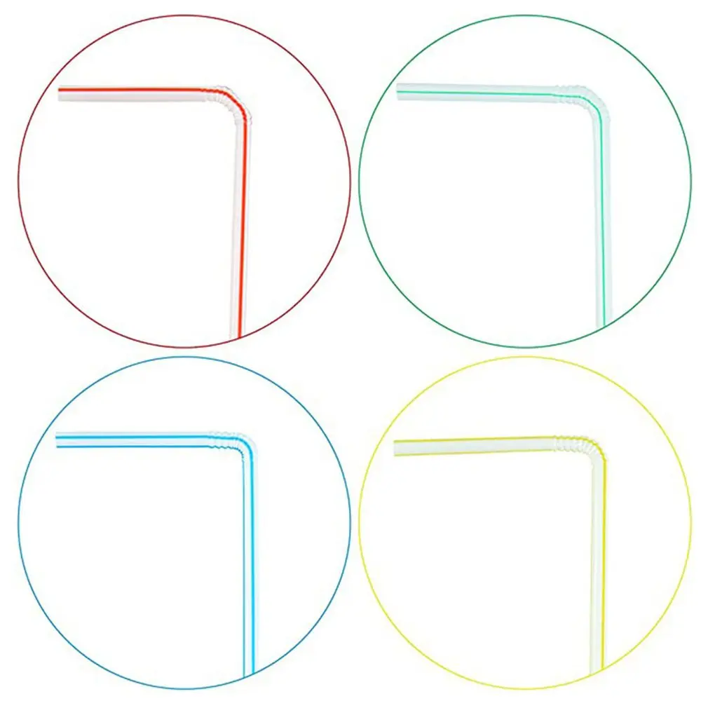 500 шт., гибкие пластиковые соломинки в полоску, разные цвета