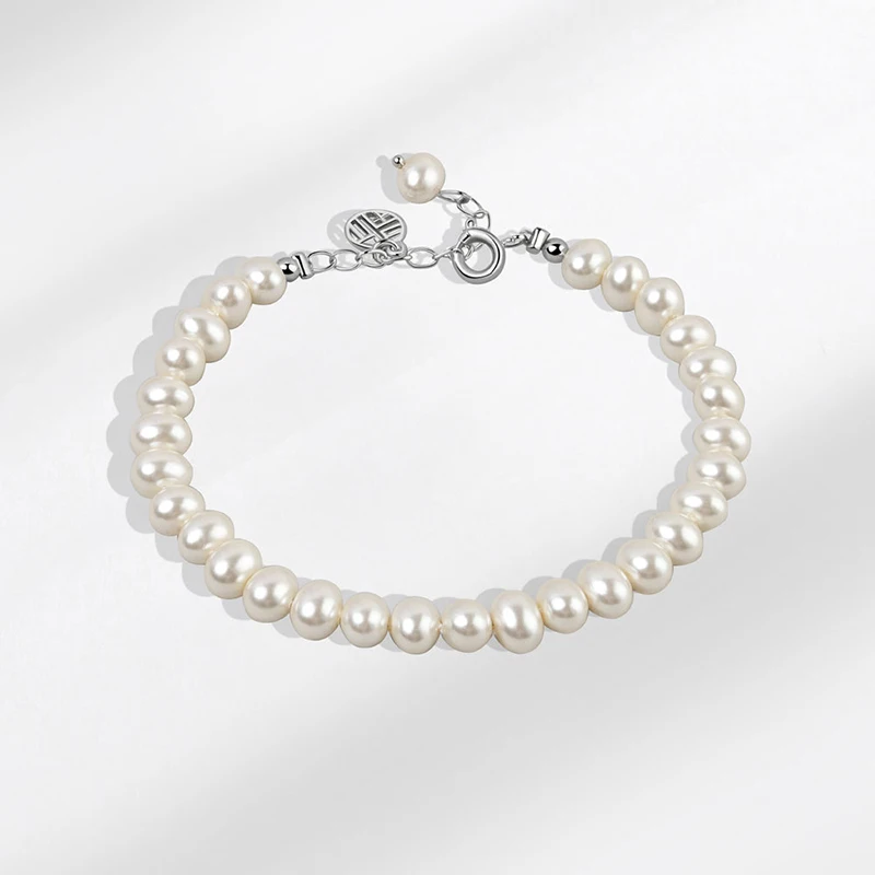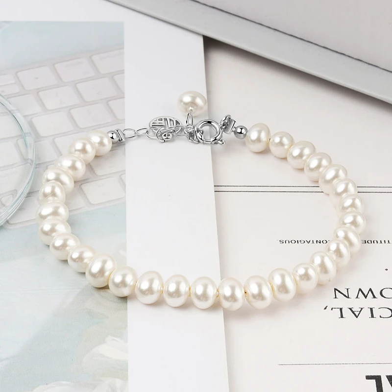 Браслет с натуральным жемчугом и пресноводным жемчугом, 4-7 мм