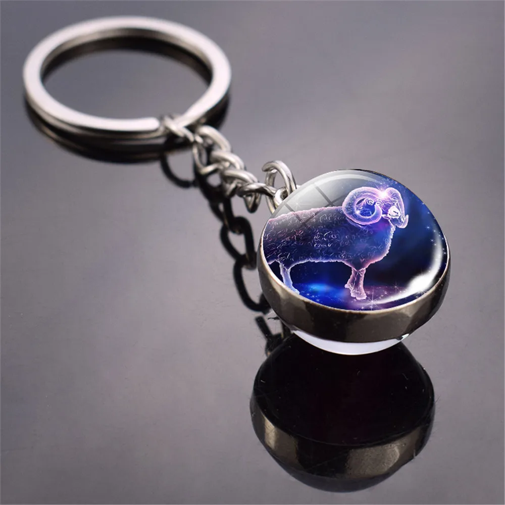 Брелок со знаками Зодиака, со стеклянным шаром, для мужчин и женщин...