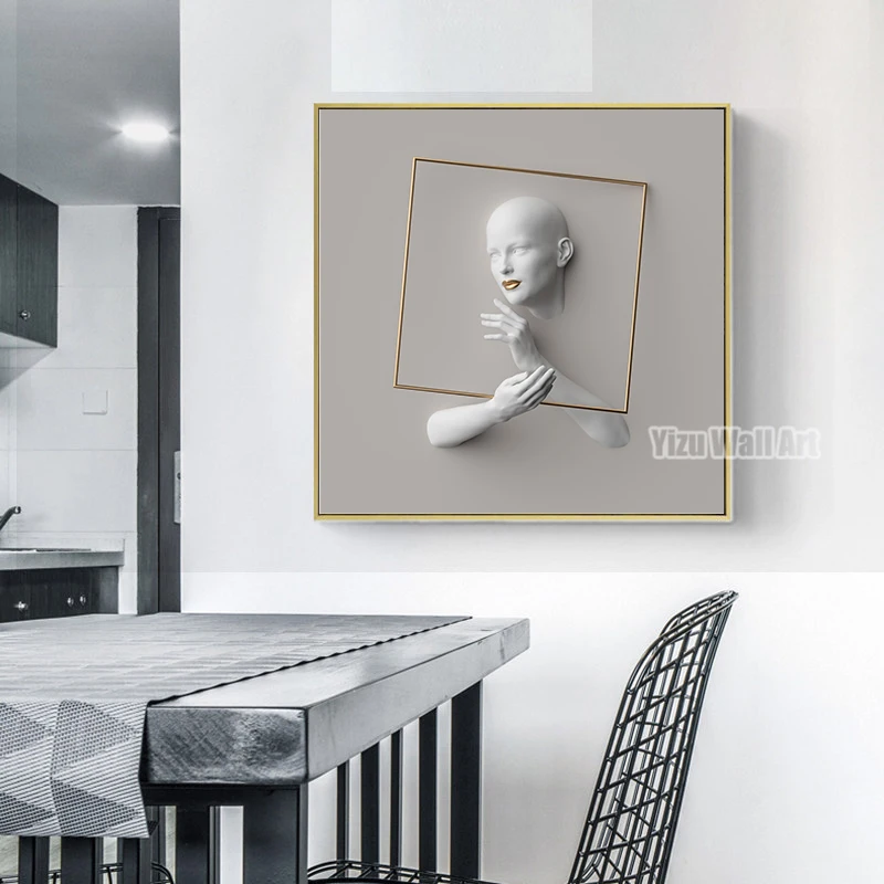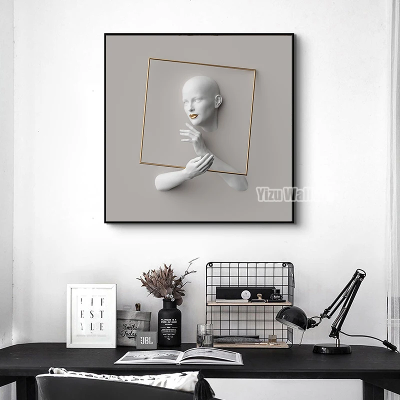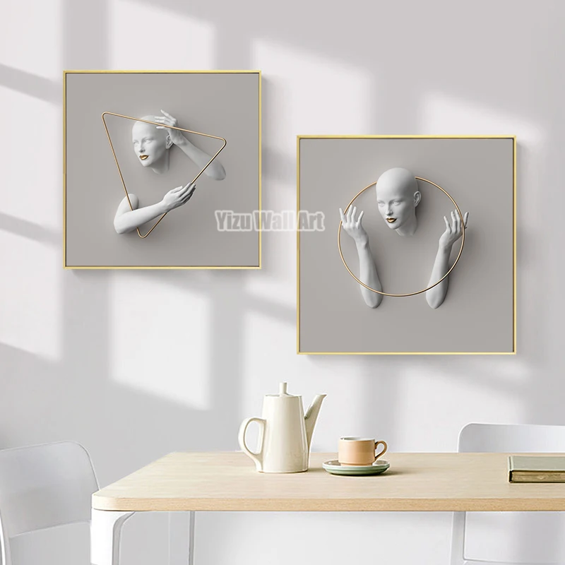 3D визуальные серые фигуры художественные картины на холсте Современный абстрактный эстетический минималистичный настенный плакат картины печать домашний декор