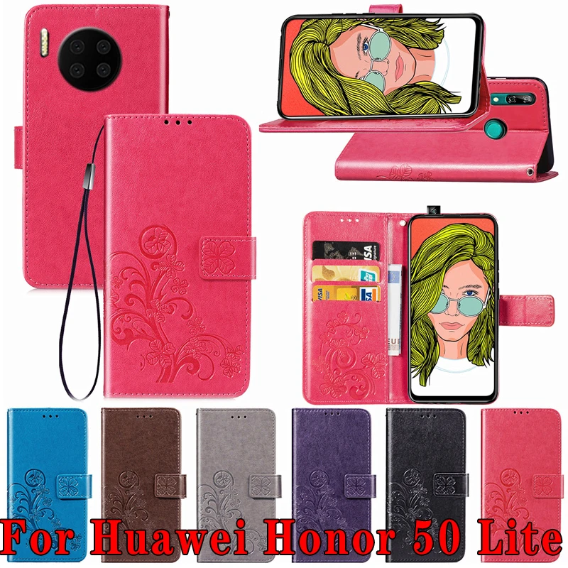 Кожаный флип-чехол для телефона Huawei Honor 50 Lite, кошелек, держатель для карт, подставка, чехол-книжка с рисунком кошки, собаки