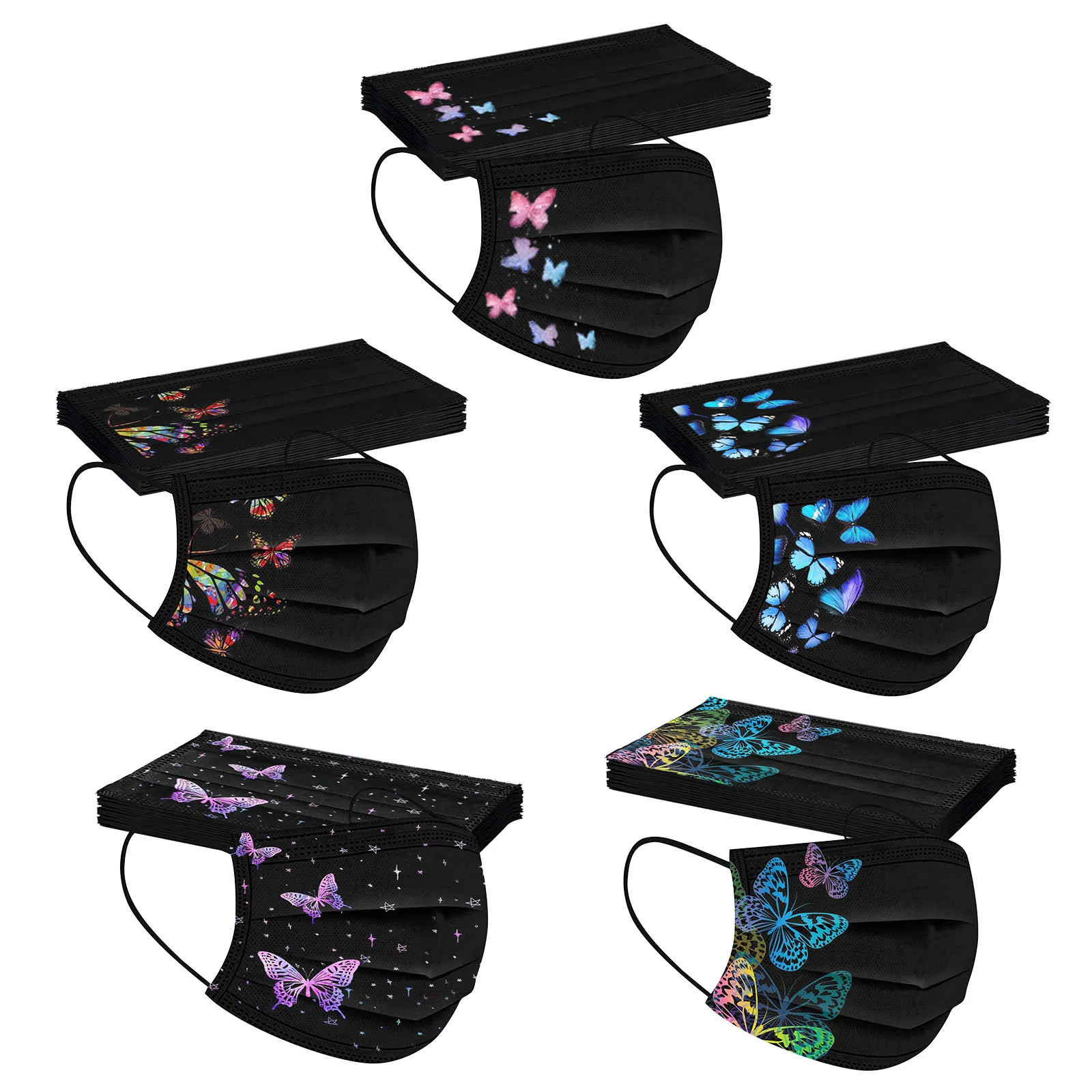 50 шт. одноразовая маска для лица, 3-слойная маска с цветочным принтом для взрослых, модная дышащая защитная маска, маски для Хэллоуина