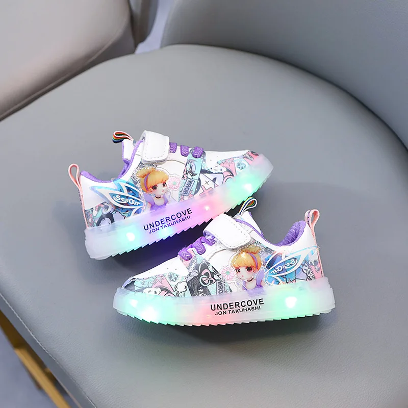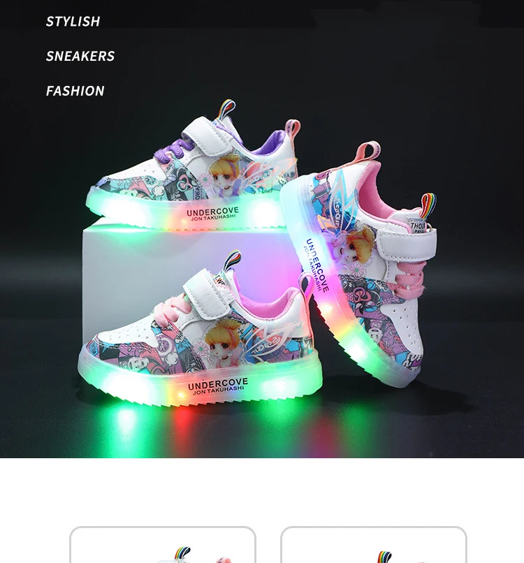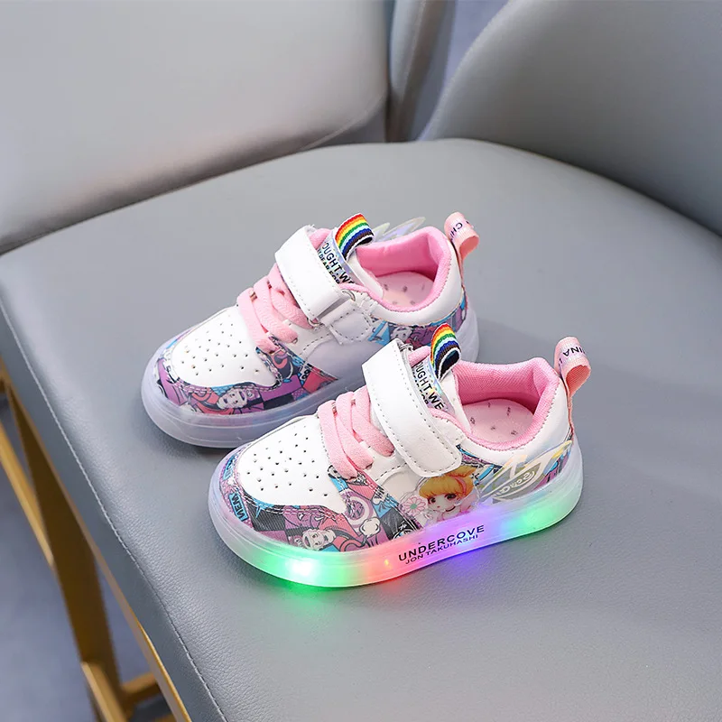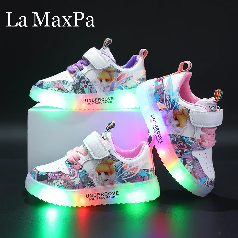 Детские светящиеся кроссовки, повседневная спортивная обувь для девочек, размеры 21-30