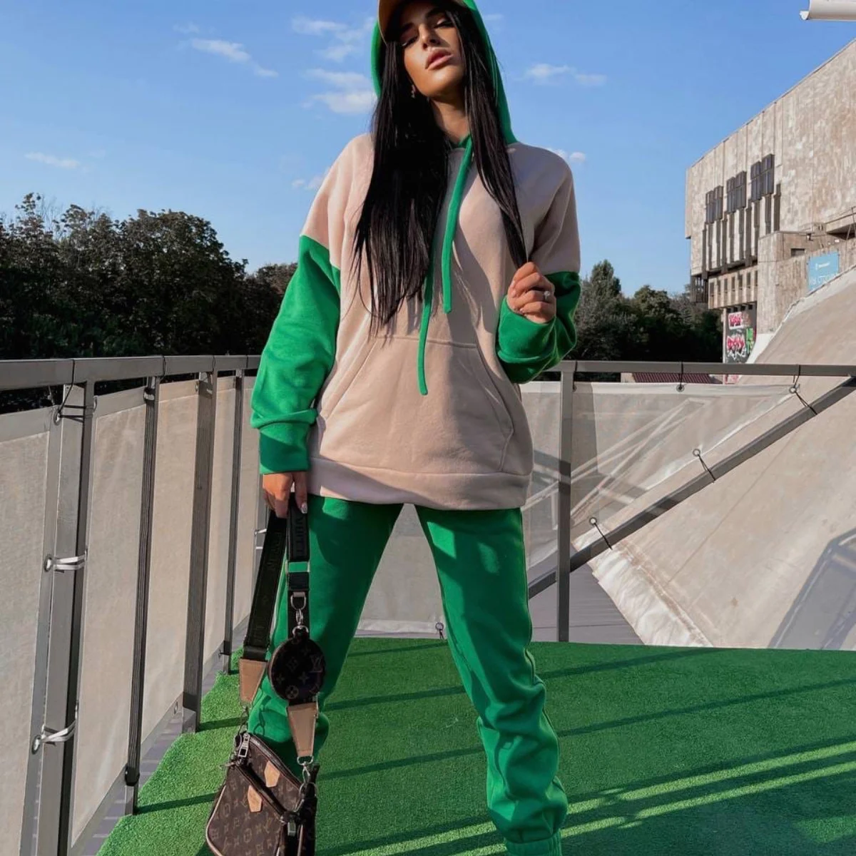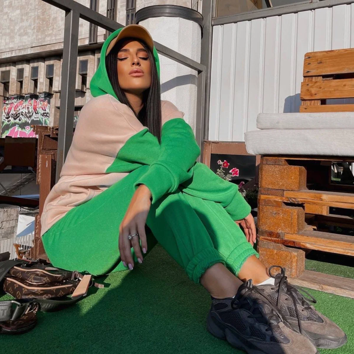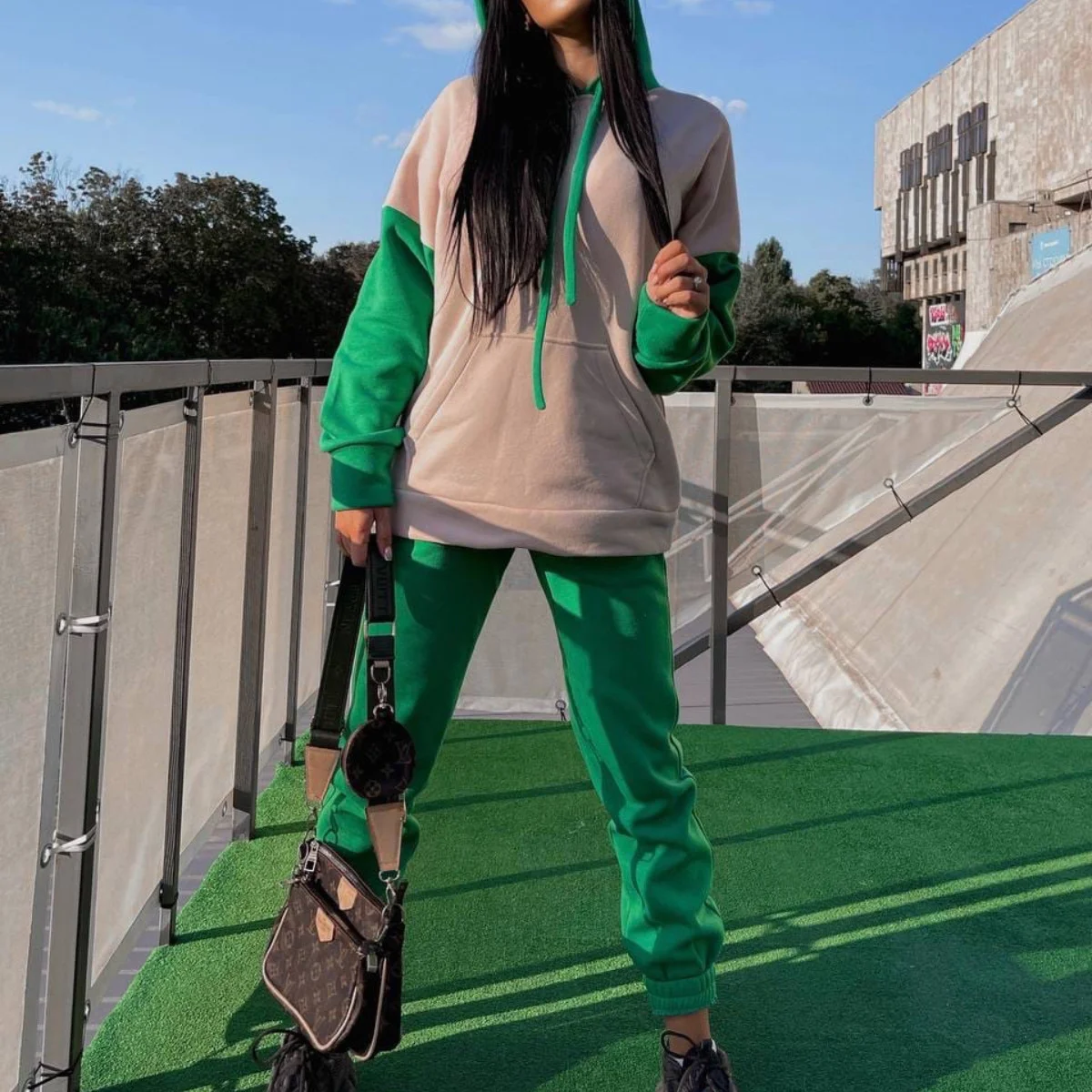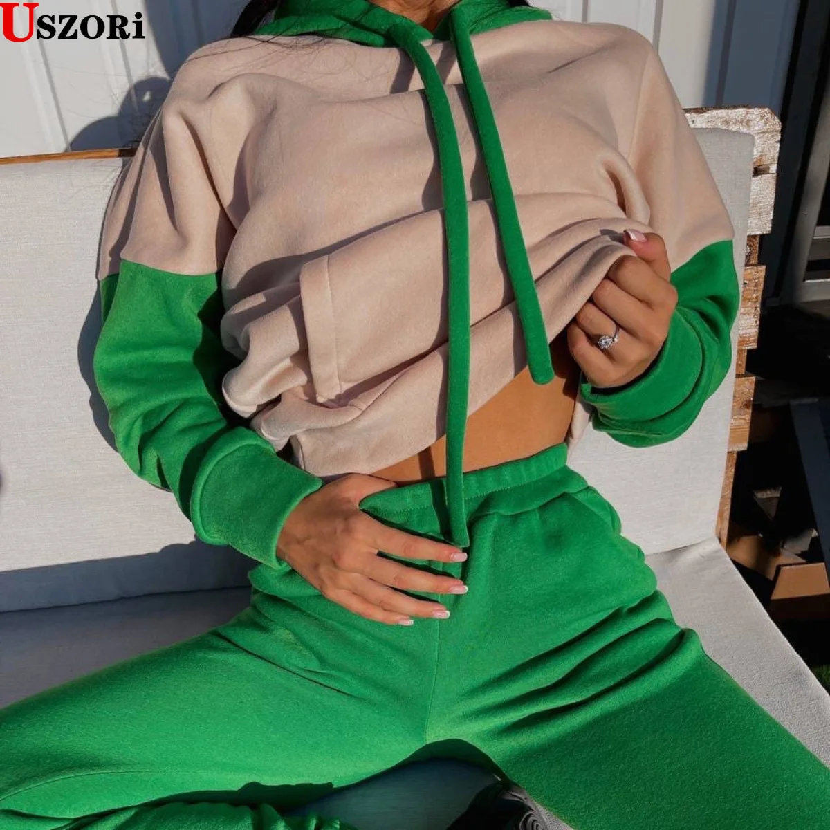 Повседневный Женский винтажный костюм из двух предметов с капюшоном...
