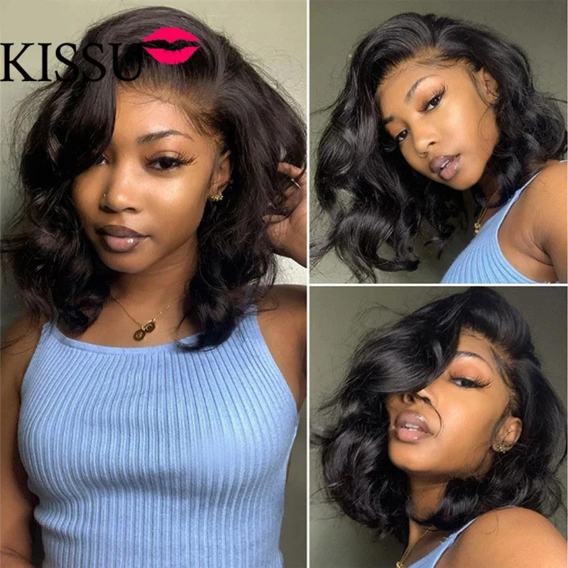 Волнистый короткий парик с Бобом, парики из человеческих волос на фронте, бразильские волосы 13x 4, кружевные передние парики, 4x4, парики на шнурках для черных женщин