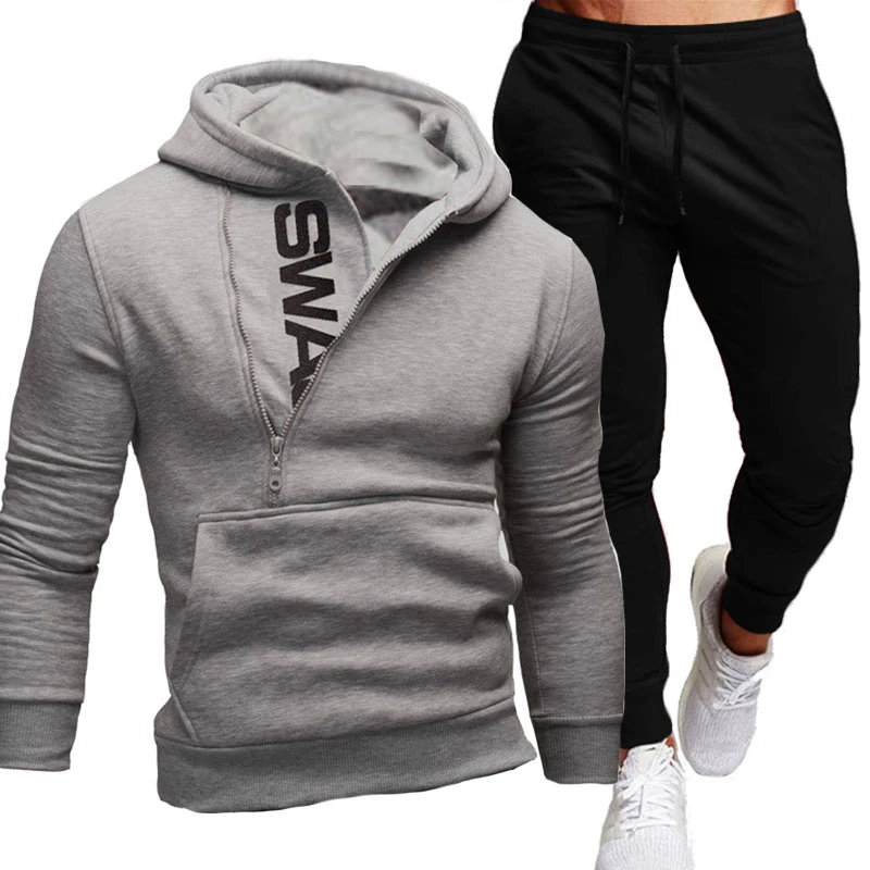 Мужской спортивный костюм, повседневный спортивный костюм, толстовка с капюшоном и штаны на молнии, комплект из двух предметов, спортивная одежда с капюшоном, модный костюм с толстовкой, мужская одежда
