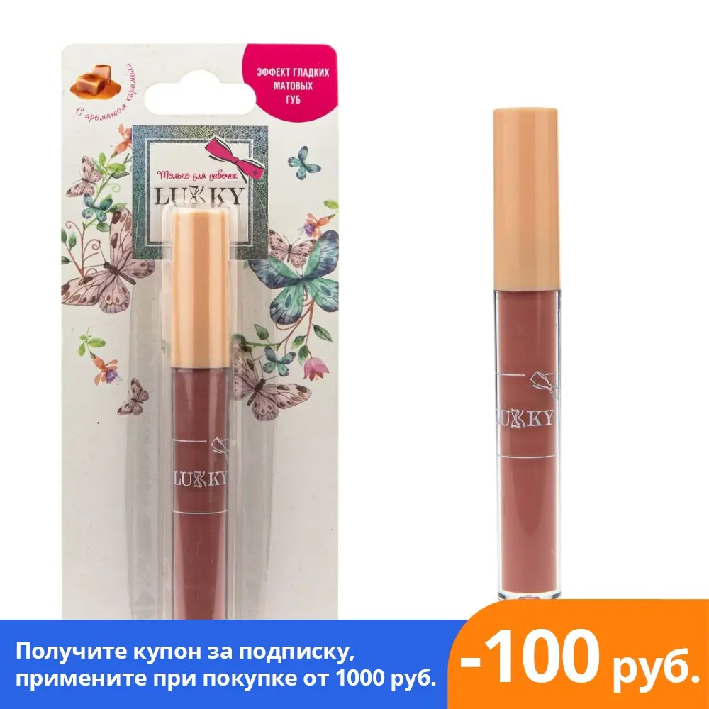 Lukky Блеск для губ "эффект гладких матовых губ" с ароматом карамели,цвет карамельно-бежевый,2,7 мл