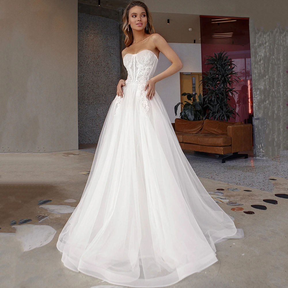 Элегантное ТРАПЕЦИЕВИДНОЕ свадебное платье без бретелек для принцессы 2022 женское свадебное платье со шлейфом