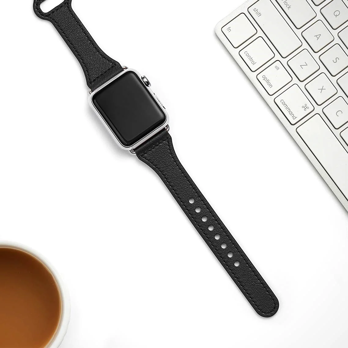 Ремешок кожаный женский для Apple Watch 7 6 SE, тонкий браслет для ...