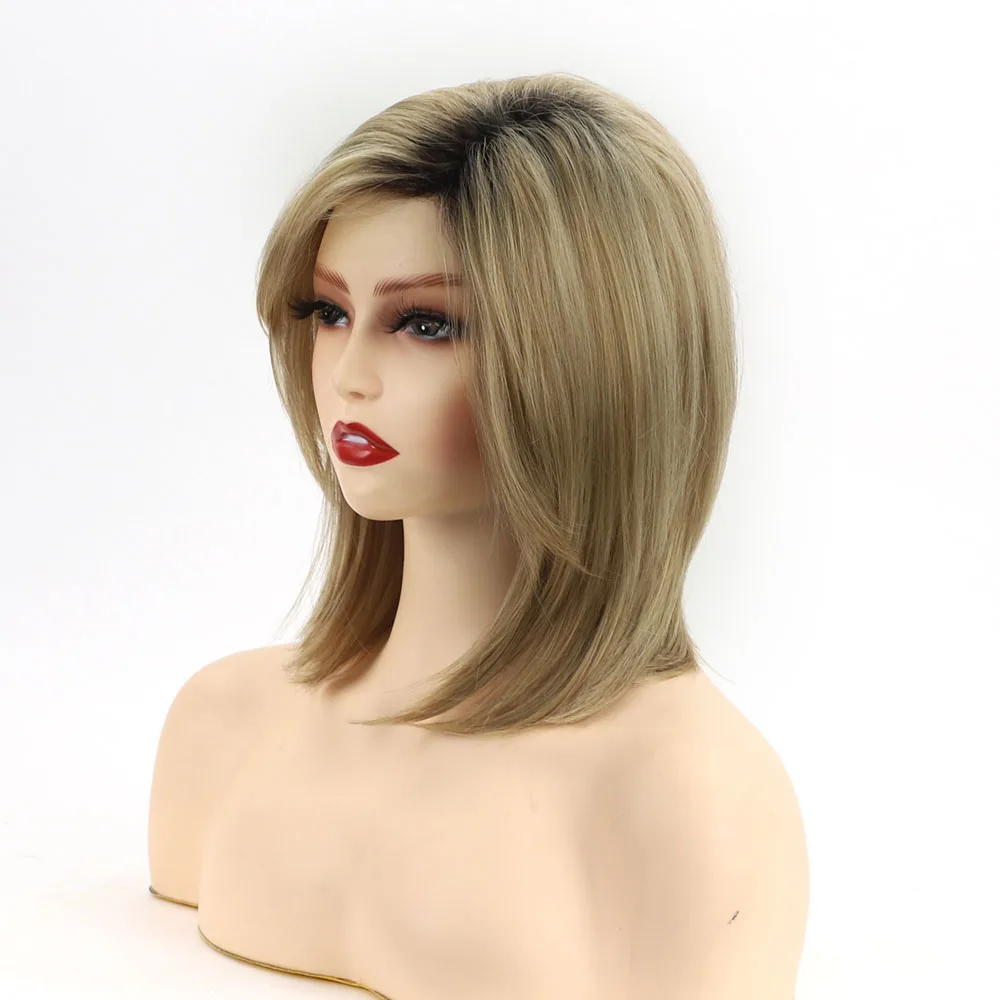 Чудесные W синтетические волосы Омбре блонд боб парики для женщин Средние прямые волосы парик женские парики натуральные термостойкие парики
