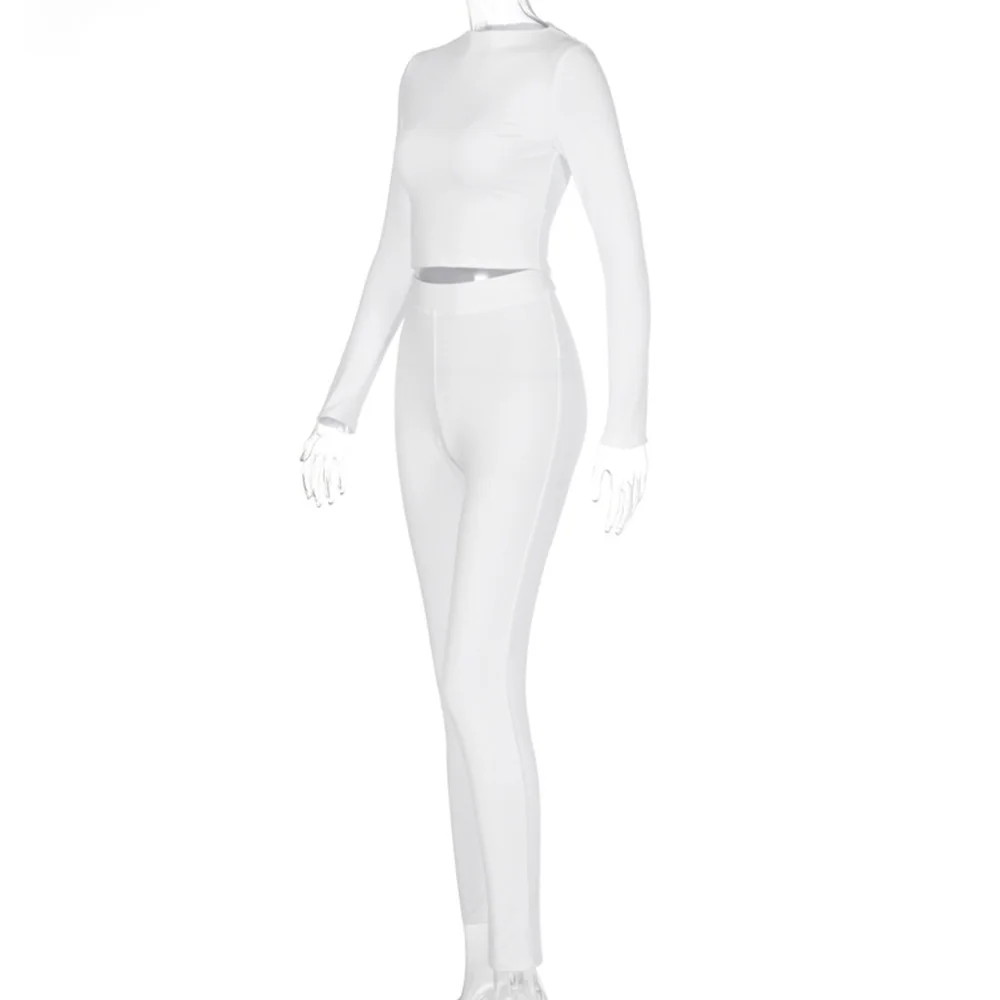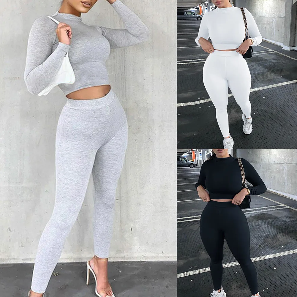 Комплект спортивной одежды из двух предметов, Женский облегающий Повседневный Спортивный короткий топ с длинным рукавом, леггинсы, женская одежда для активного отдыха