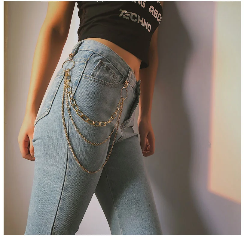 Женский ремень в стиле панк, женский ремень в стиле хип-хоп, брюки с кисточками, Женские Модные металлические цепи для джинсов ND237