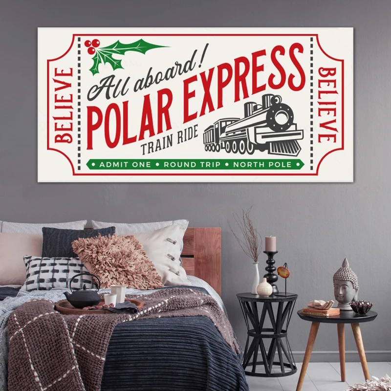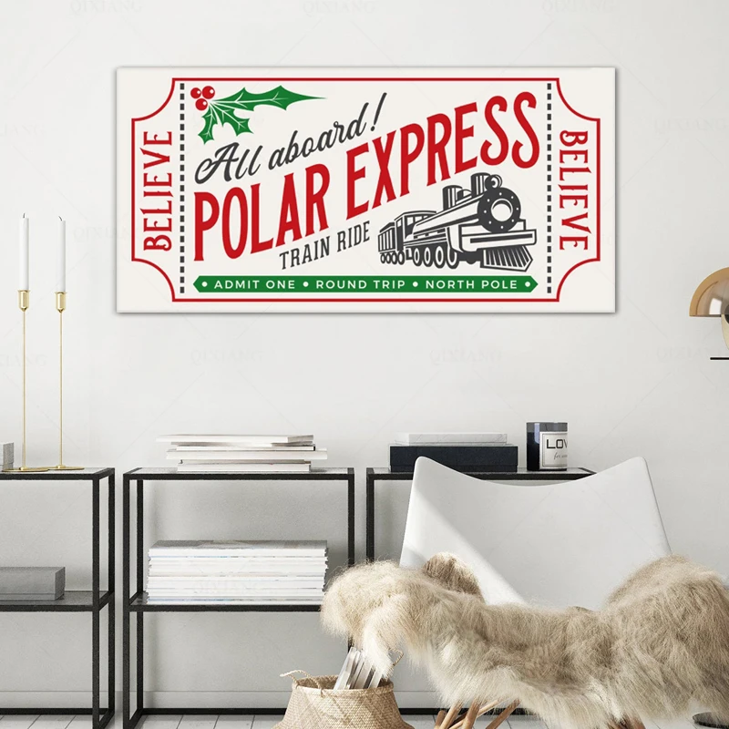 Polar Express билет, ВИНТАЖНЫЙ ПЛАКАТ, картина для вашего Рождества, домашний декор, деревенский знак, холст, печать, настенное искусство, картина, украшение