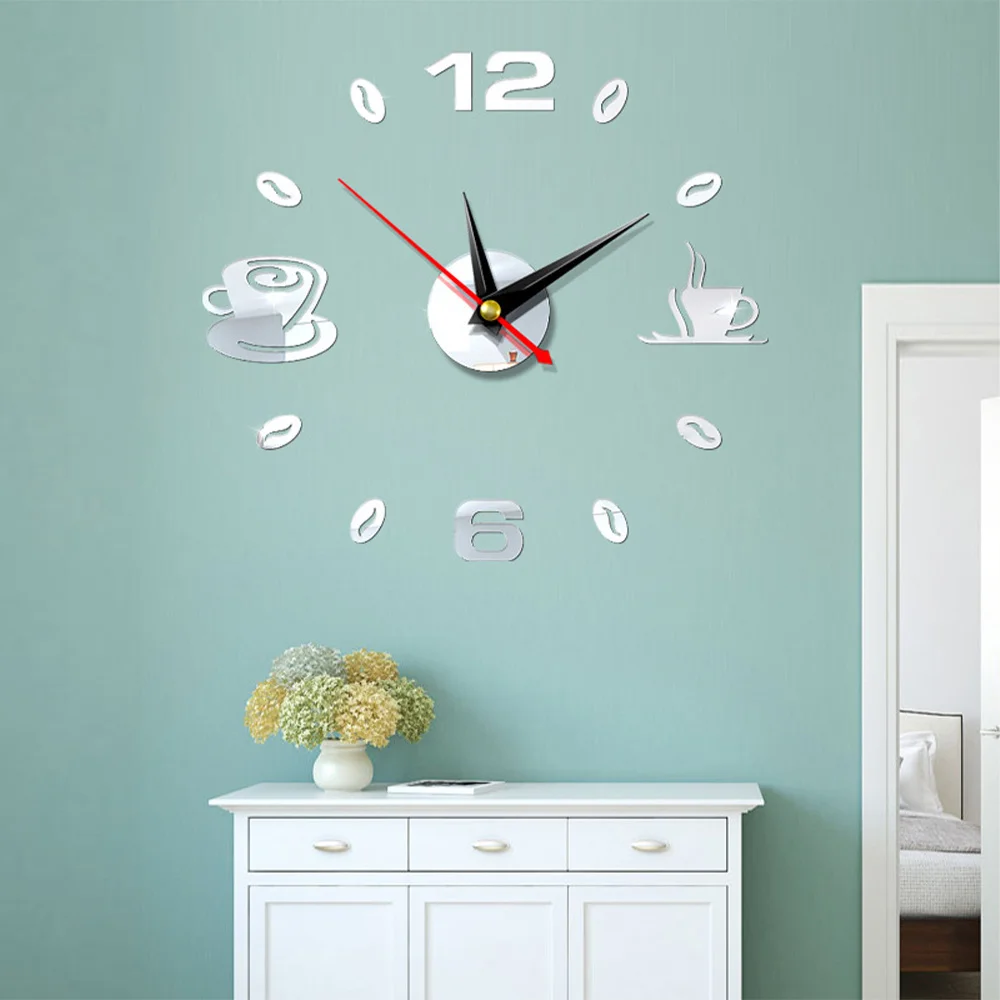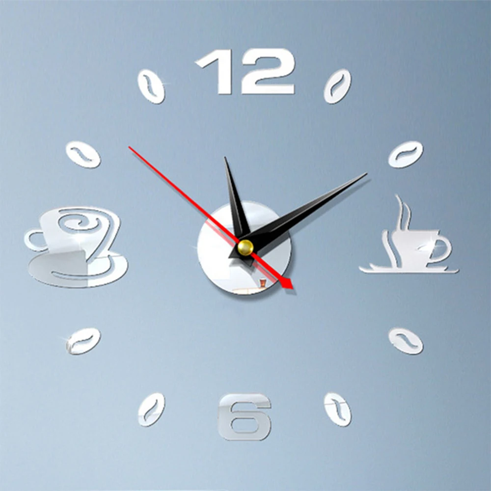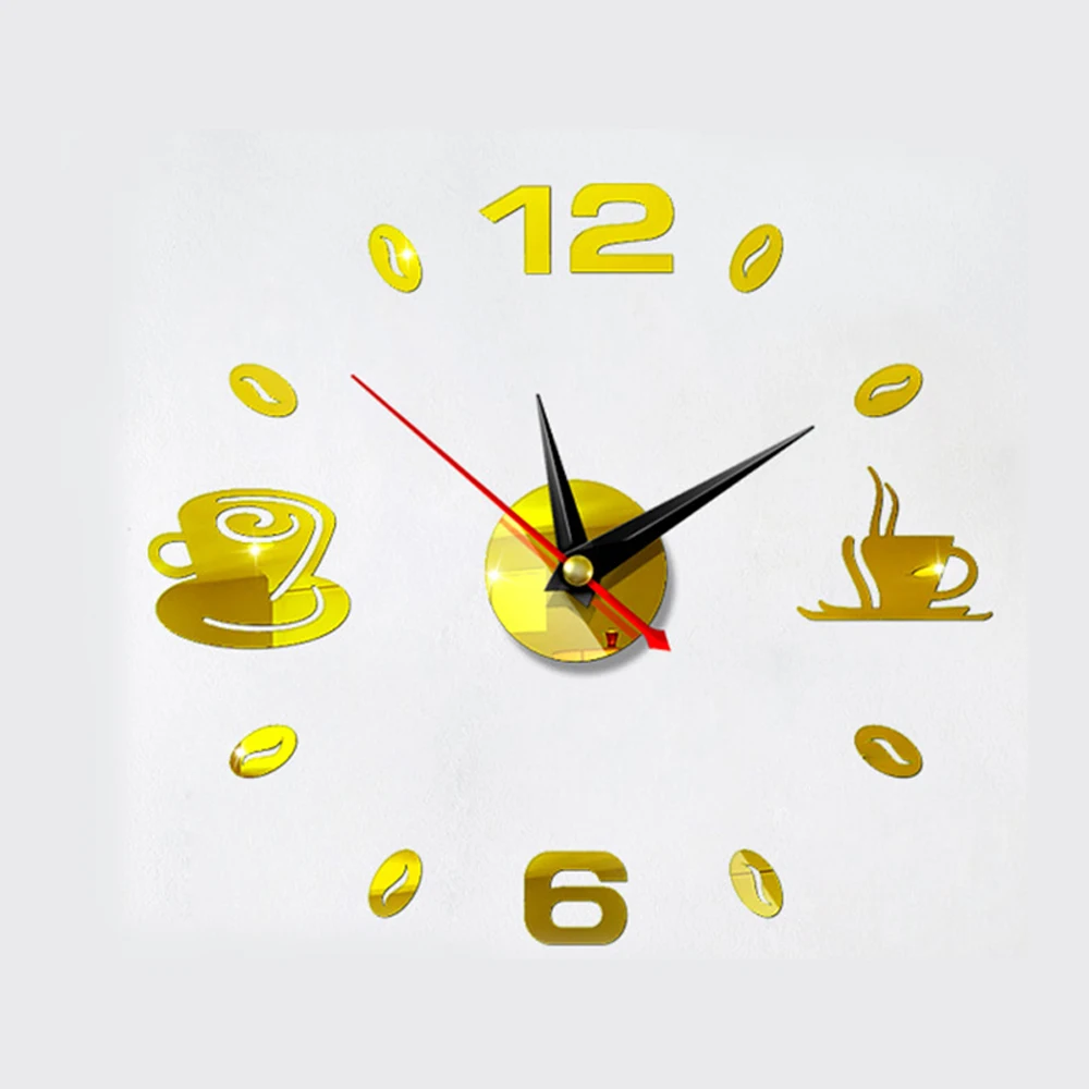 Характеристики: Материал:Акрил Рисунок:Кофейные чашки Движение:Механический Дисплей:Аналоговый Аккумулятор:1 х АА батарея (не входит в комплект) Цвет:Красный, черный, серебряный, темно-золотой, золотой светильник Характеристика:3D, 12 часовой дисплей, самоклеющиеся, из водонепроницаемого материала
