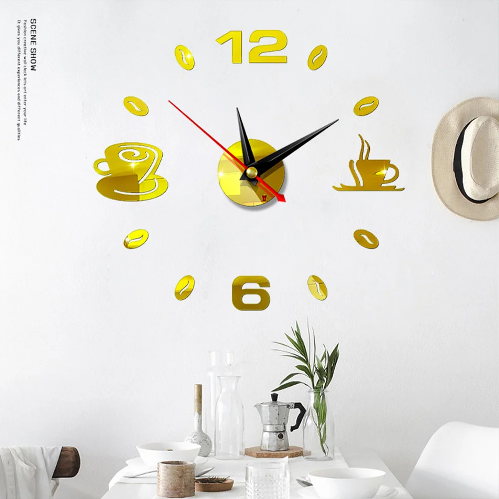 Акриловые часы, настенные зеркальные наклейки сделай сам, 3D цифры, настенные часы, современный дизайн, чашки для кофе и чая, часы, наклейки для дома и офиса, Декор