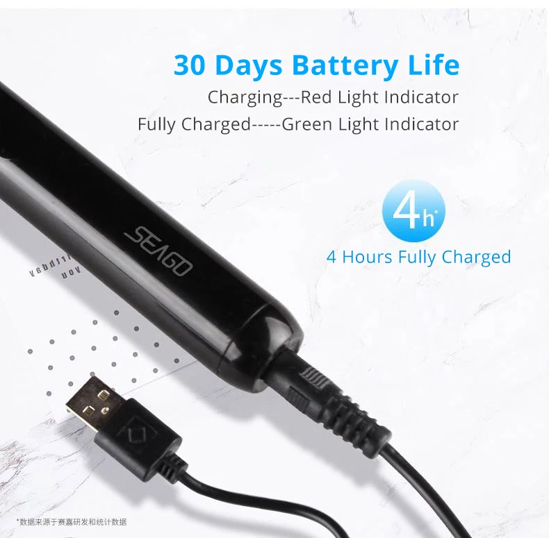 Электрическая зубная щетка SEAGO SG551 Звуковая, перезаряжаемая, 4 режима, водонепроницаемая, с 3 сменными насадками, Глубокая чистка, уход за полостью рта, USB