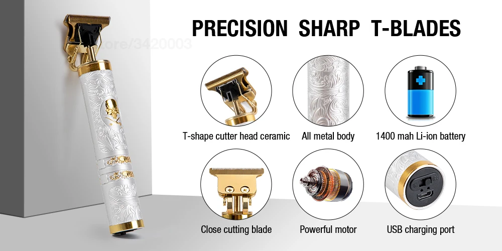 Машинка для стрижки волос T9 использует мощный двигатель мощностью 10 Вт, 7000 об/мин, мощную выходную мощность, стабильную и эффективную, подходит для любого типа волос.