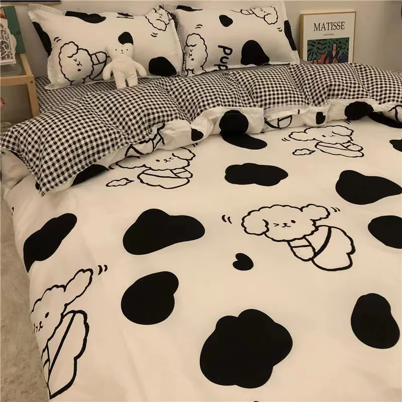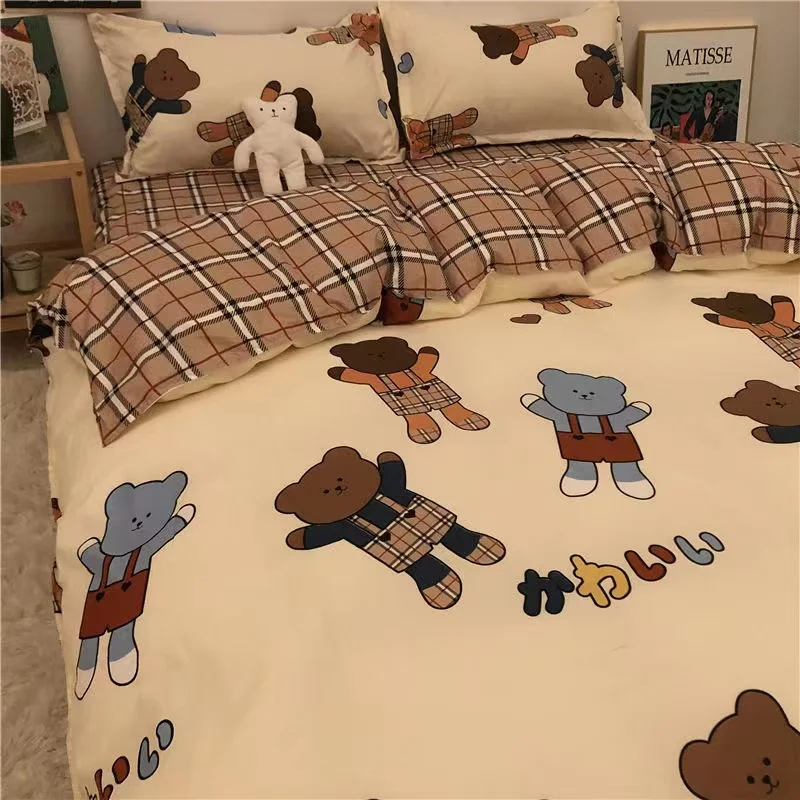 Комплект постельного белья для мальчиков и девочек, простыня из мягкого материала, пододеяльник, пододеяльник, наволочка, симпатичное постельное белье с мультяшным медведем