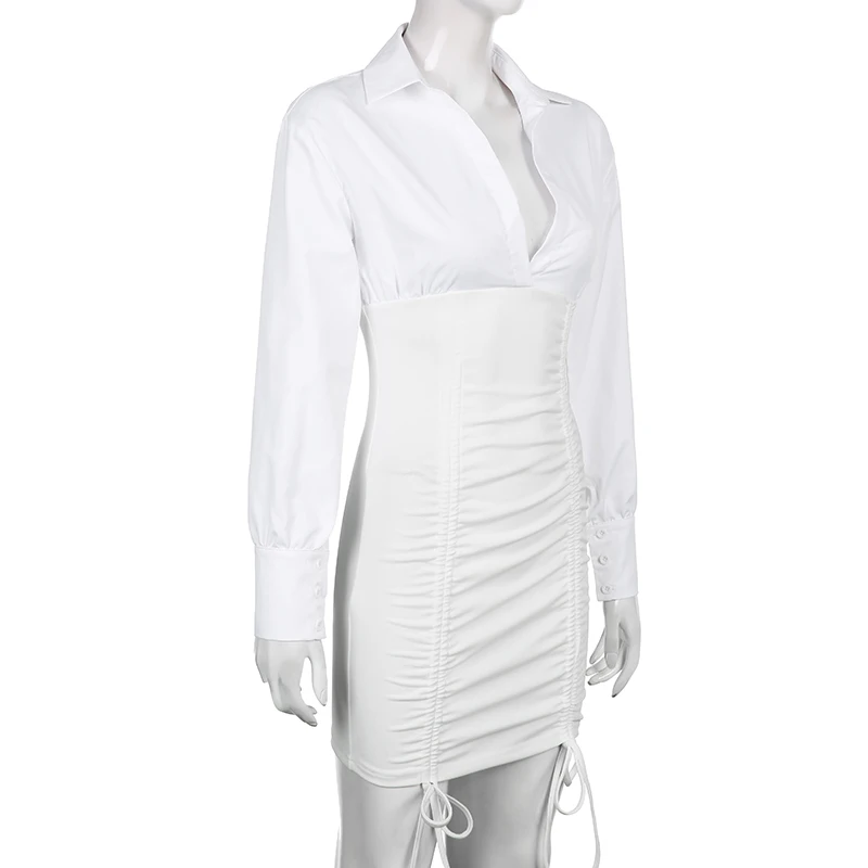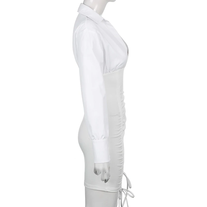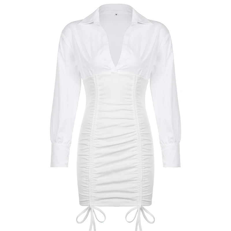 Элегантное однотонное белое платье BIIKPIIK с кулиской, женское мини-платье с отложным воротником и длинным рукавом, уличная одежда, женская одежда