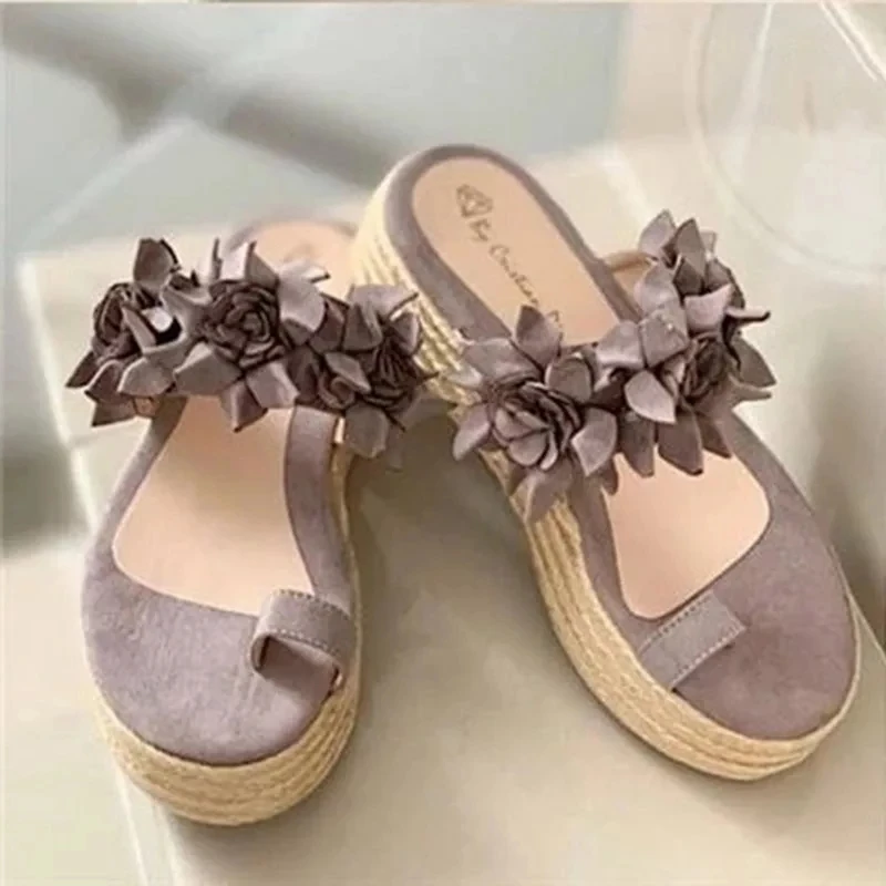Женские пляжные шлепанцы на танкетке, соломенные сандалии на среднем каблуке, дизайнерские шлепанцы с цветами, летняя обувь, 2021