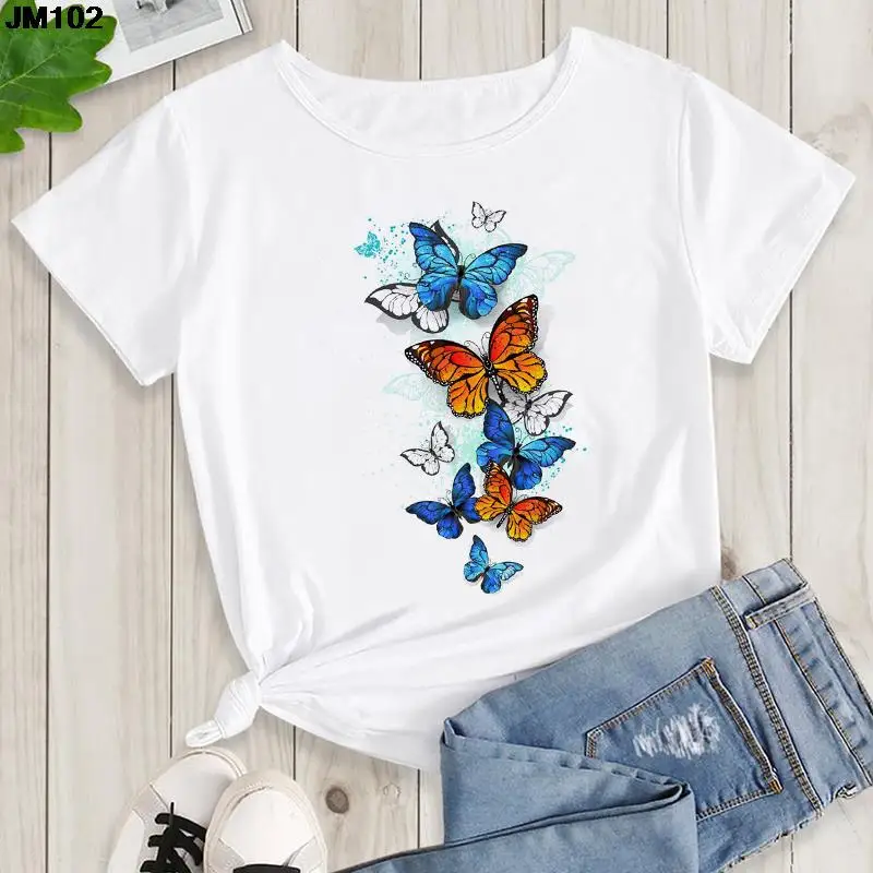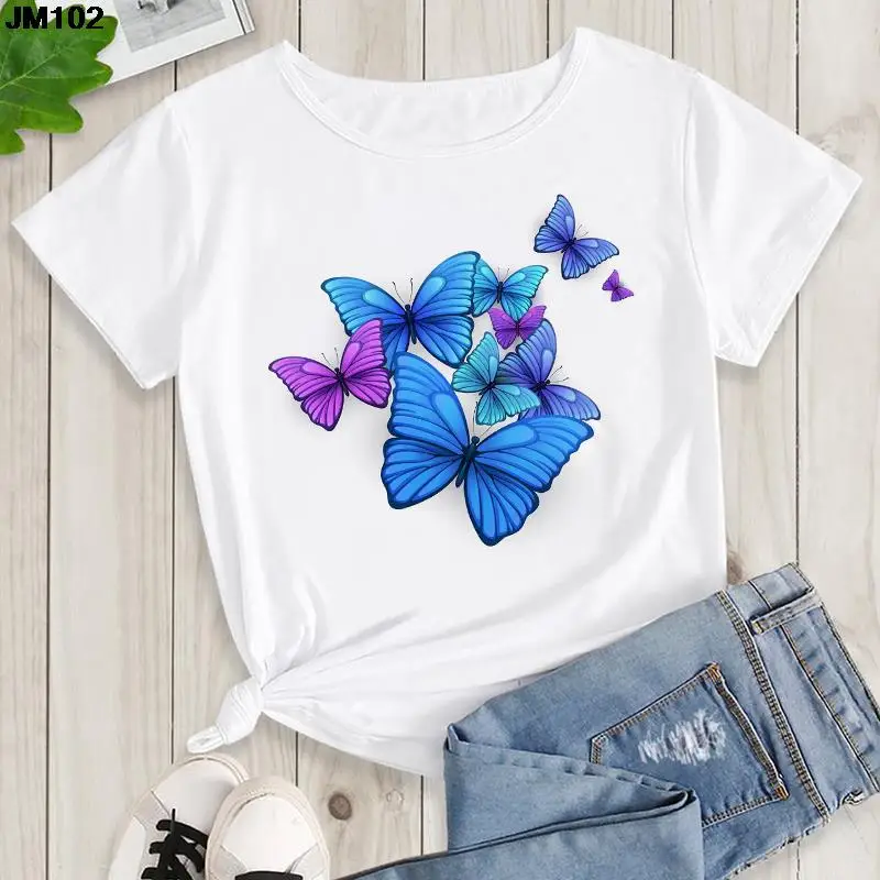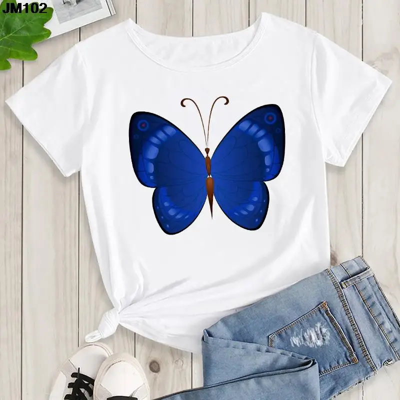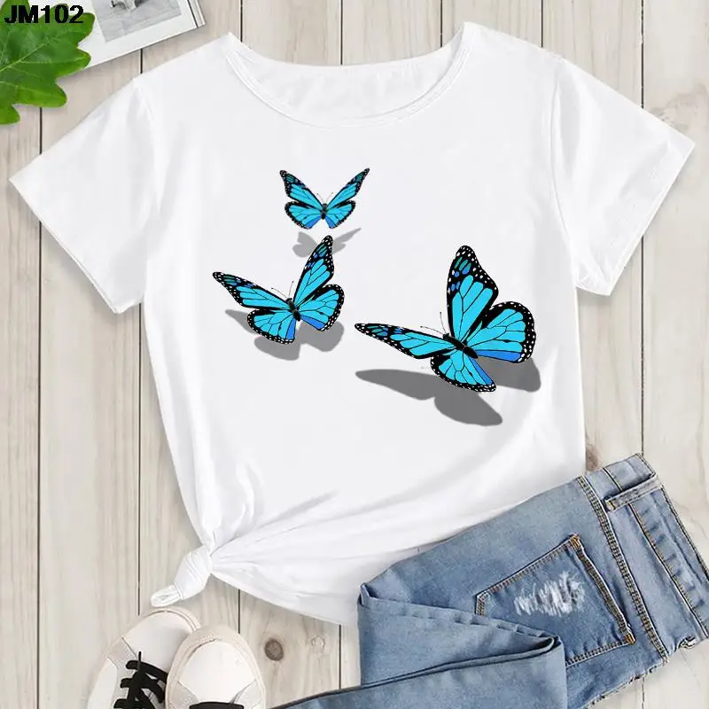 Женская футболка с мультяшным принтом бабочки, футболка с коротким ...