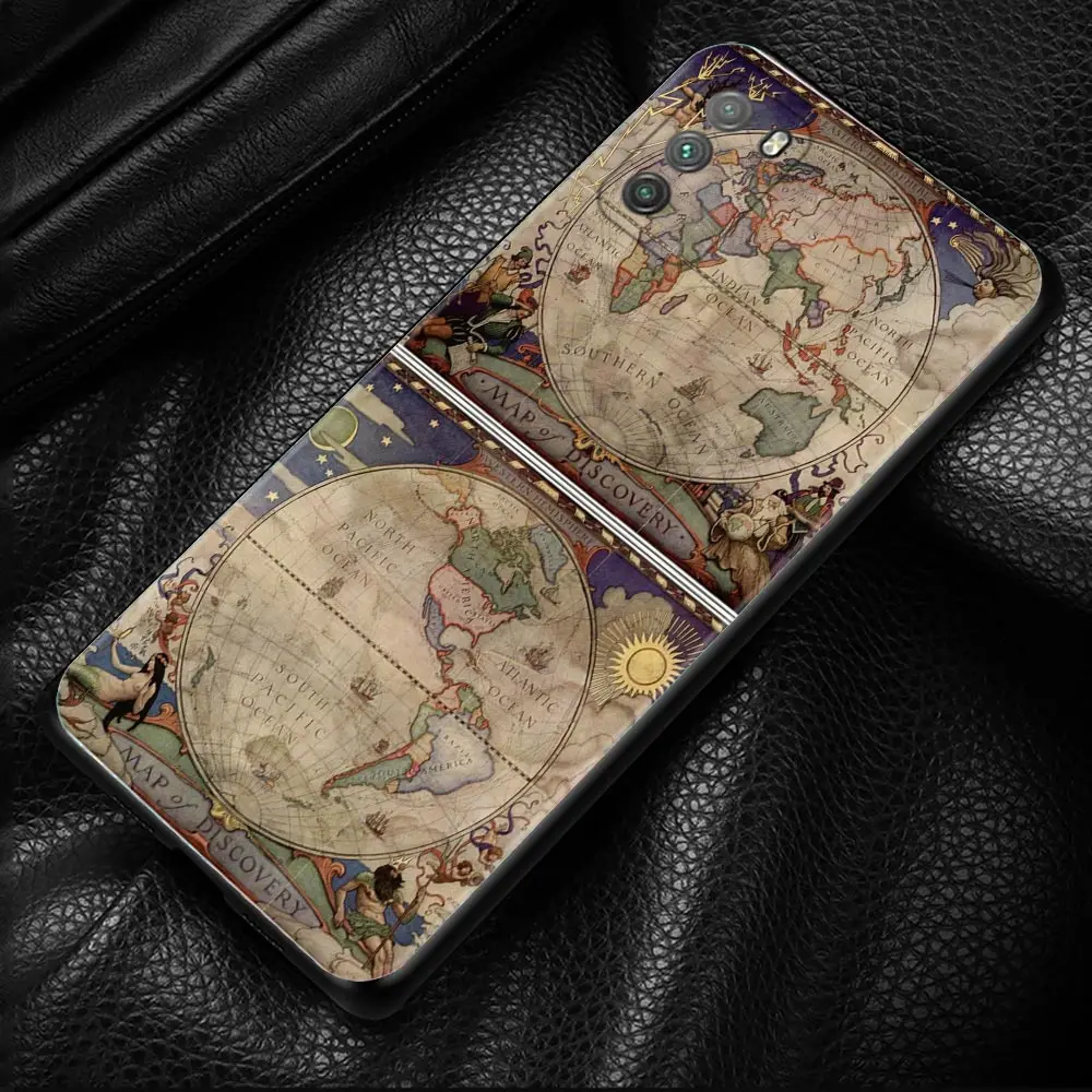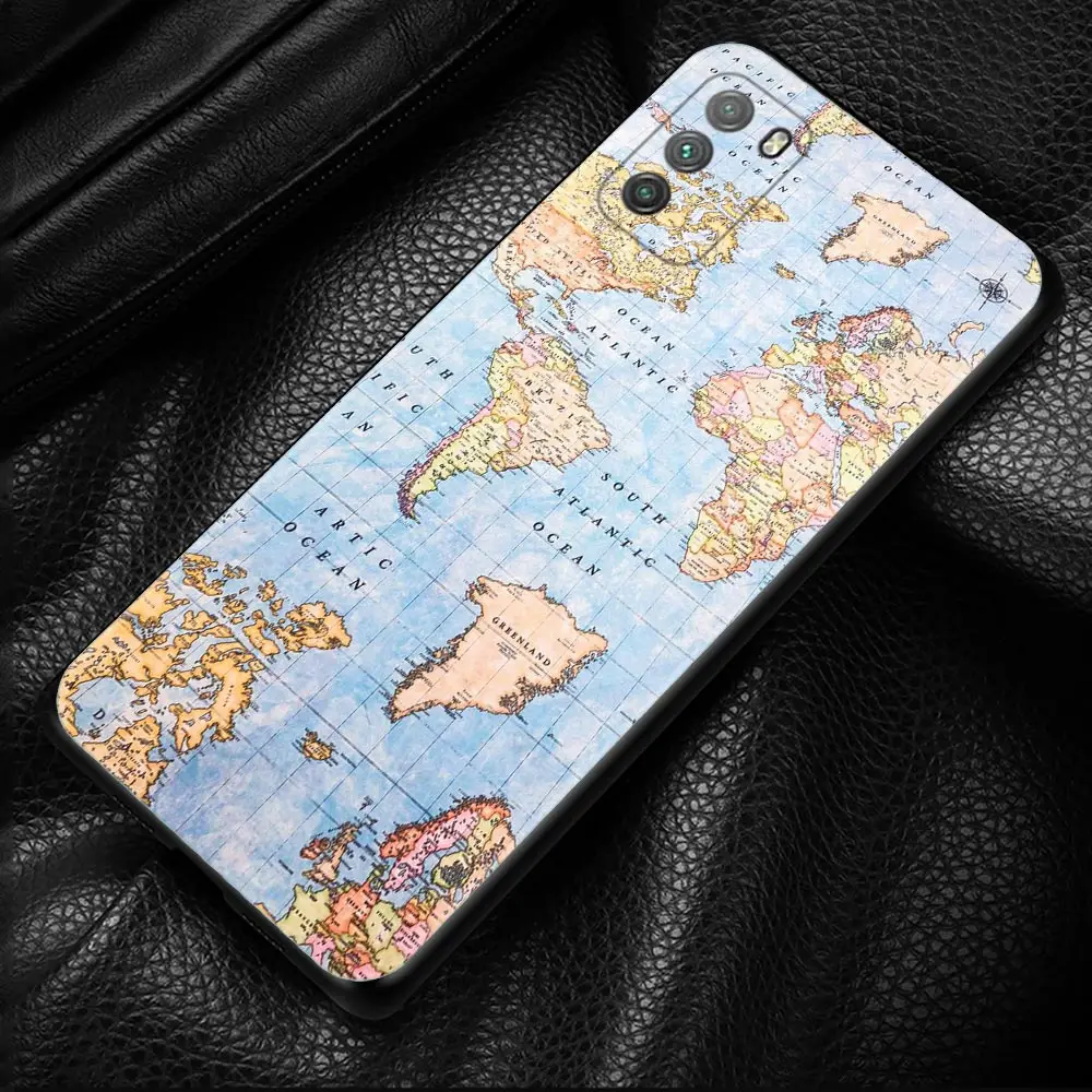 Чехол для Xiaomi Poco X3 F3 GT M3 NFC F1 M3 M4 Pro 5G F3 GT, Обложка для Mi 11T 10T Pro 9T 11 Note 10 Lite Civi, оболочка с картой мира