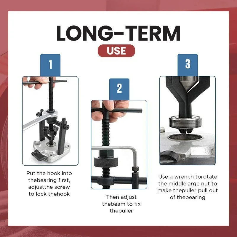 Съемник подшипника используется вУдаление всех рукав типа подшипников с диаметром от 0,6 "до 1-1/2" (16 мм-38 мм).Конструкция конструкции,Мягко поворачивая маленький ключ может производить сильную силу тяги.