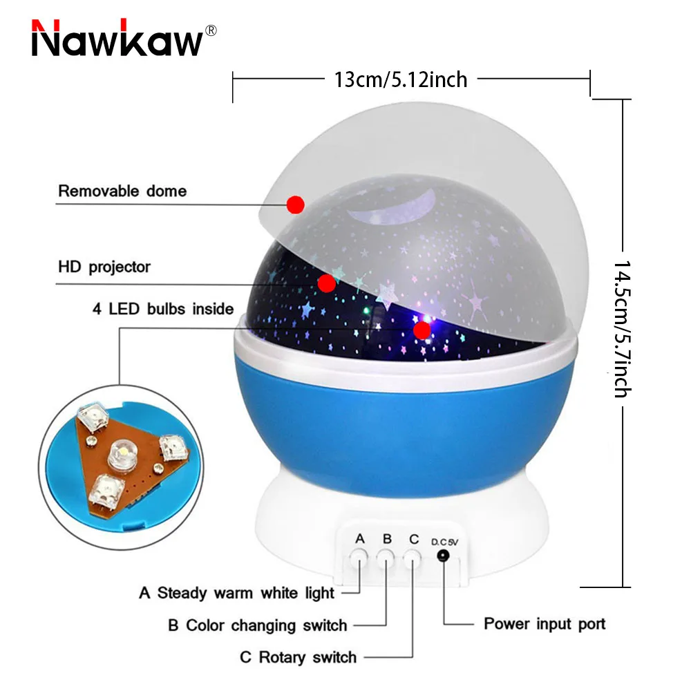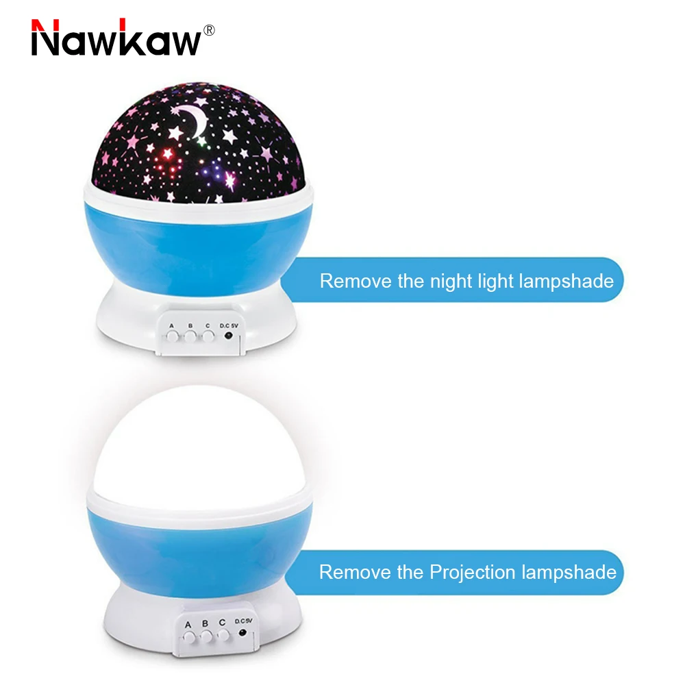 Вращающаяся проекционная лампа Nawkaw с изображением звездного неба, светодиодный ночник, Подарочная лампа для детской, спальни, проектор в виде Луны и галактики, настольная лампа
