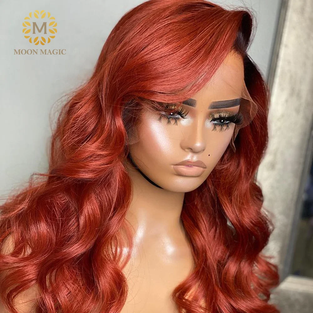 Парик с имбирной сеткой спереди, волнистые волосы красного цвета, парики для женщин, 250 плотный парик на сетке, блонд, бразильские человеческие волосы, парик, распродажа