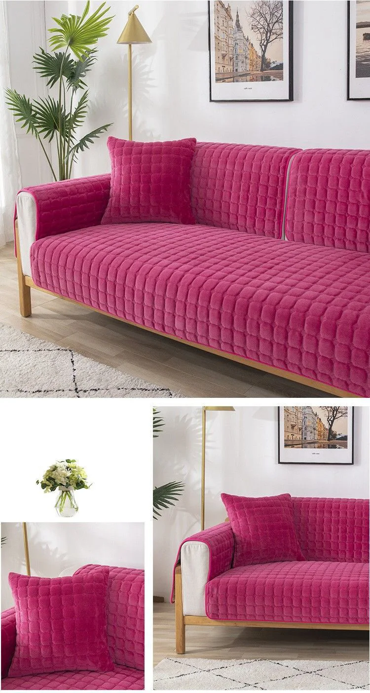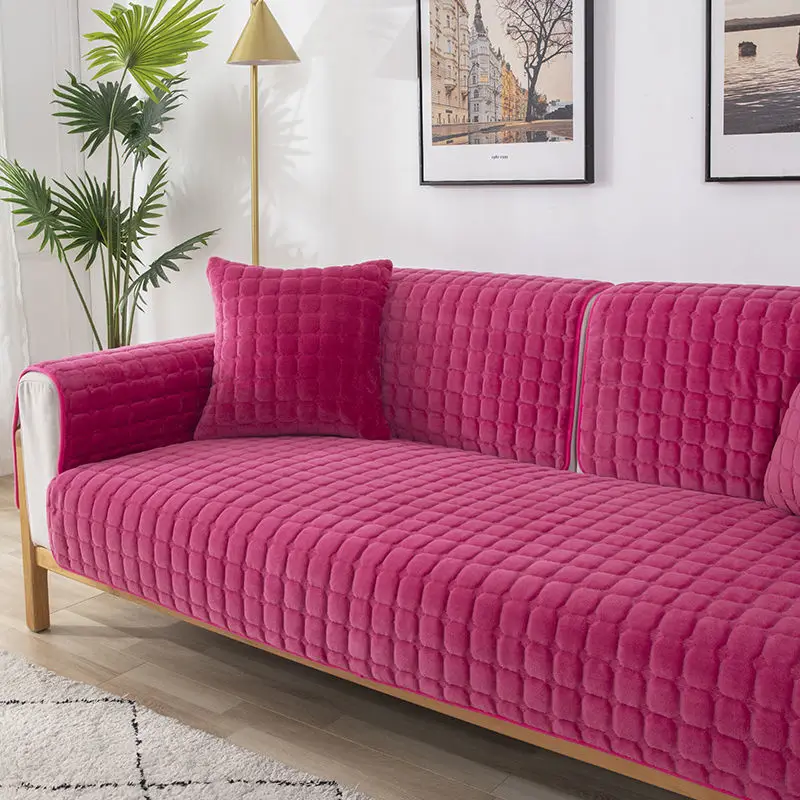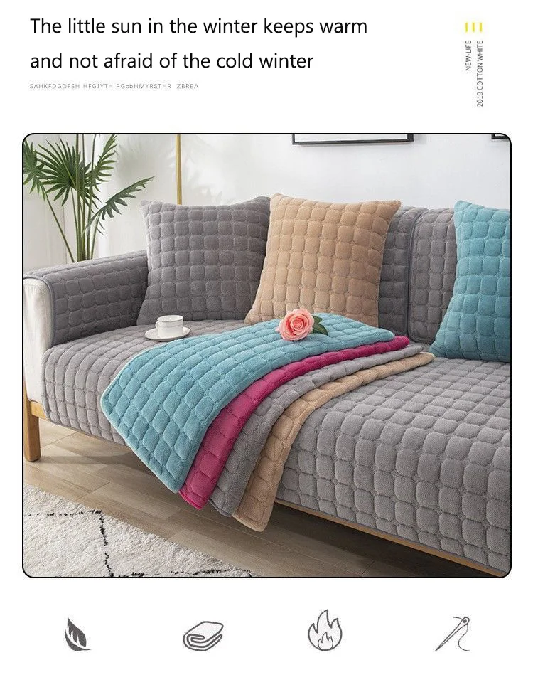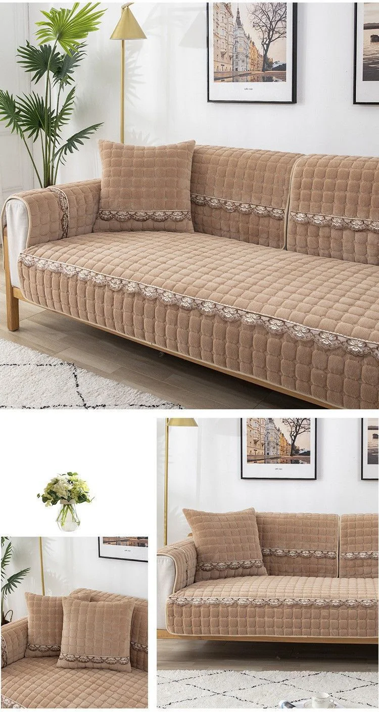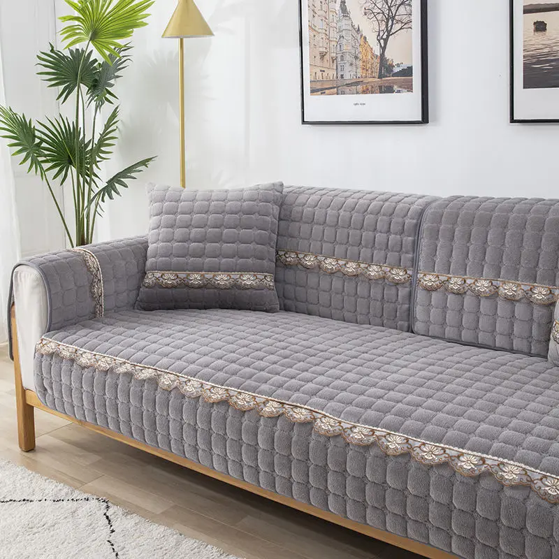 Плюшевая подушка для дивана, зимняя утепленная Нескользящая подушка для дивана, Высококачественная кружевная фланелевая подушка, Универсальный декоративный чехол для дивана