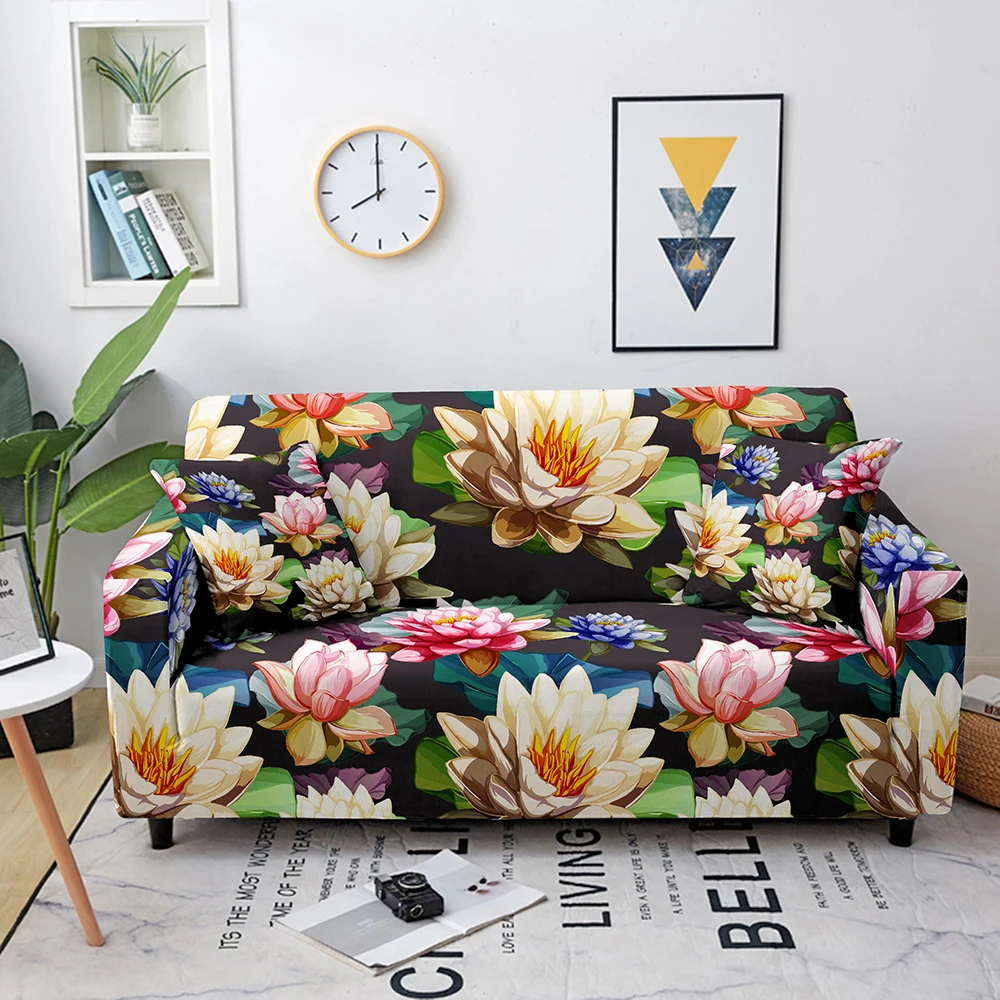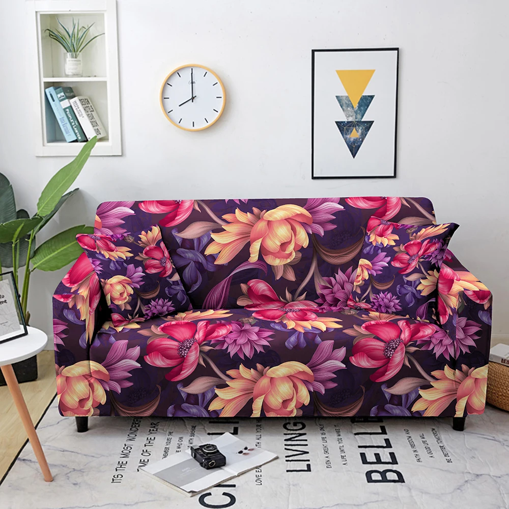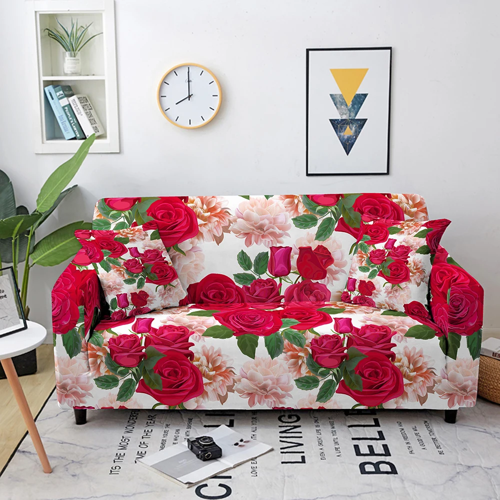 Красивый эластичный чехол для дивана с цветочным принтом для гостиной, растягивающийся чехол для дивана в виде Розы, современный чехол для дивана на 1234-местный диван