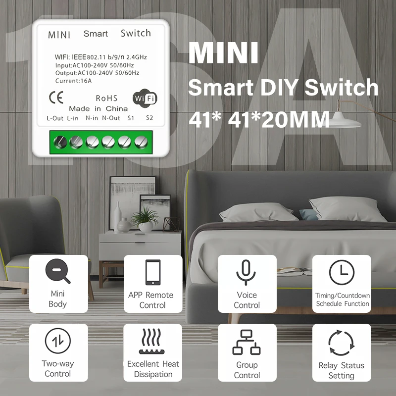 Мини-модуль выключателя света AUBESS 16 А, Умный домашний выключате...